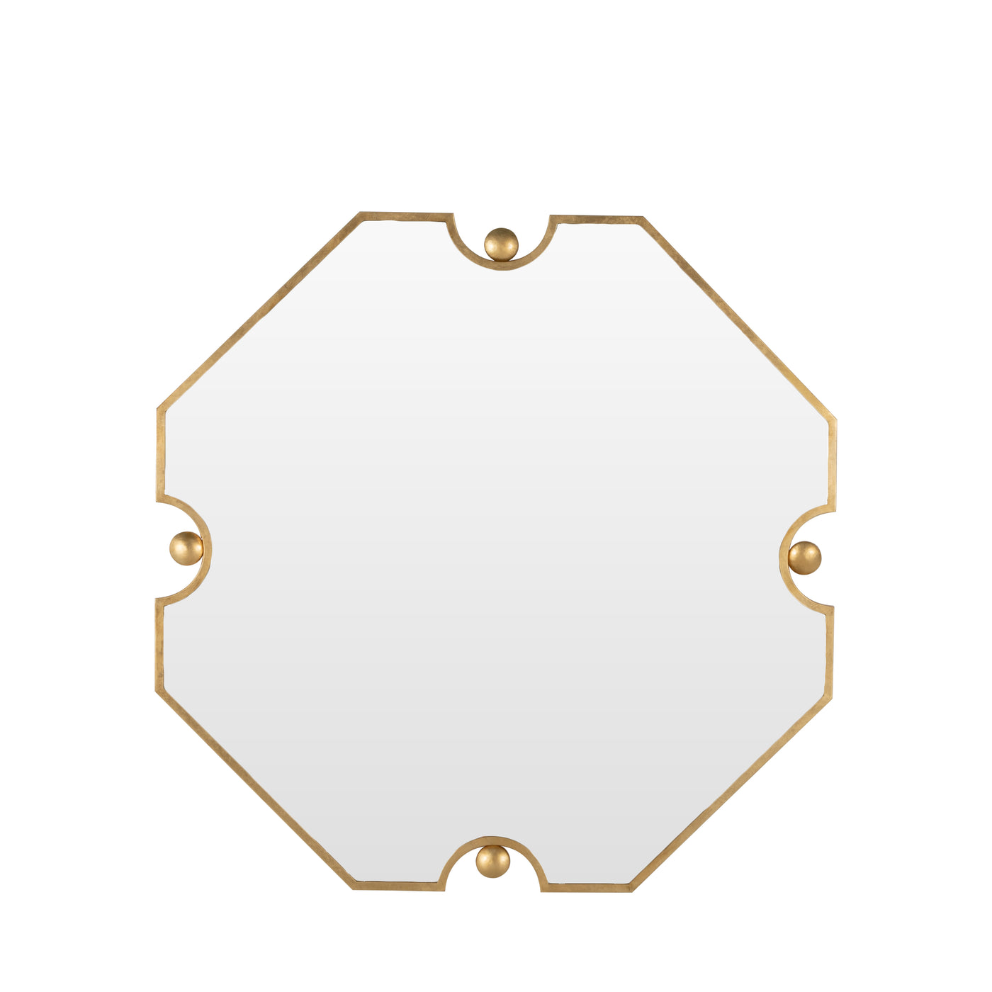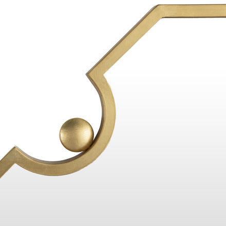 The Monet Mirror - Small is a refined and versatile accent piece, designed to bring a touch of elegance and charm to your space. With its compact size, this mirror is perfect for smaller areas like powder rooms, entryways, or as part of a gallery wall. Its unique antique brass finish adds warmth and sophistication, making it a timeless addition to any decor style. Featuring a distinctive octagonal shape with notched corners highlighted by brass spheres, the Monet Mirror - Small offers a modern twist on classic design. Despite its smaller scale, it makes a bold impression, reflecting light and adding depth to any room. Whether used as a standalone piece or paired with its larger counterpart for a cohesive look, the Monet Mirror - Small is a statement of understated luxury and thoughtful craftsmanship.