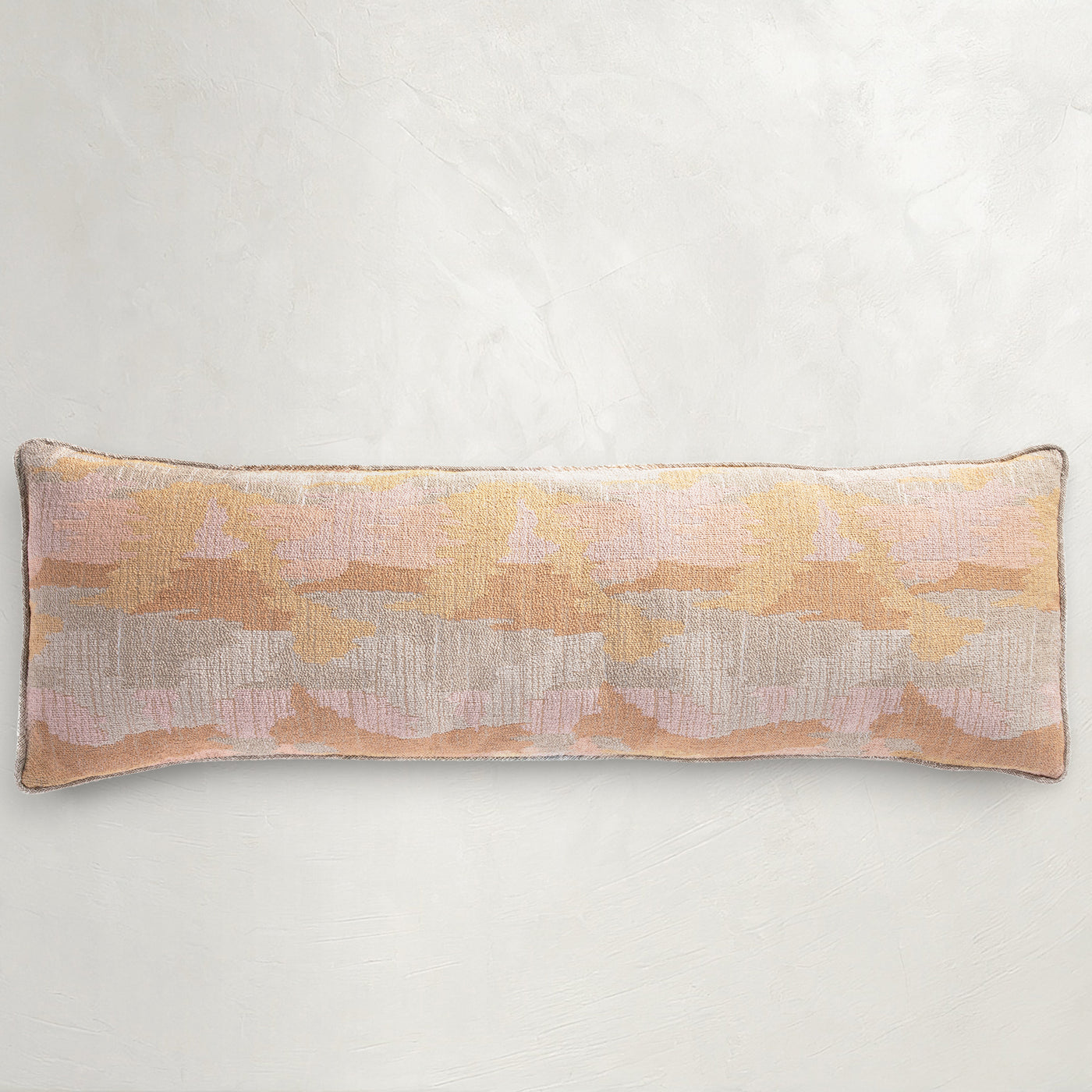 The Tonal Reflections Pastel Pillow features a subtle abstract design in soft, earthy pastel shades, creating a serene and sophisticated look. Its textured finish and soothing palette make it a versatile accent for any space. Proudly made in the USA, our Gabby pillows are expertly handwoven by skilled American craftsmen. Offering stain-resistant fabrics and available in various sizes, these pillows come with either luxurious feather-down or hypoallergenic poly-fiber fill. Designed for both beauty and practicality, Gabby pillows add comfort and style to any space.