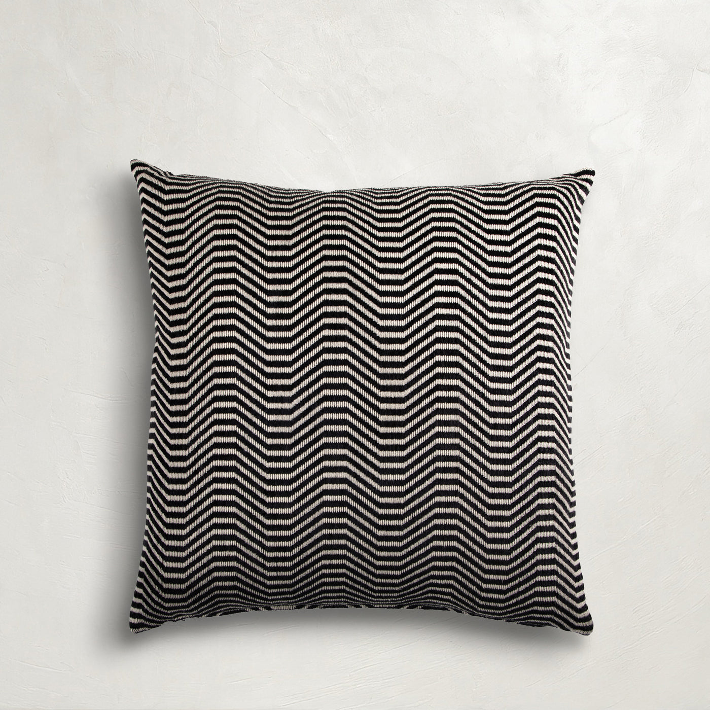 The Zrunek Pillow features a bold zigzag pattern with a symmetrical abstract design. This geometric pattern adds a contemporary flair, making it a striking accent piece for any modern or transitional décor. The intricate weave provides texture and depth, ensuring it stands out in any room. Proudly made in the USA, our Gabby pillows are expertly handwoven by skilled American craftsmen. Offering stain-resistant finishes and available in various sizes, these pillows come with either luxurious feather-down or hypoallergenic poly-fiber fill. Designed for both beauty and practicality, Gabby pillows add comfort and style to any space.