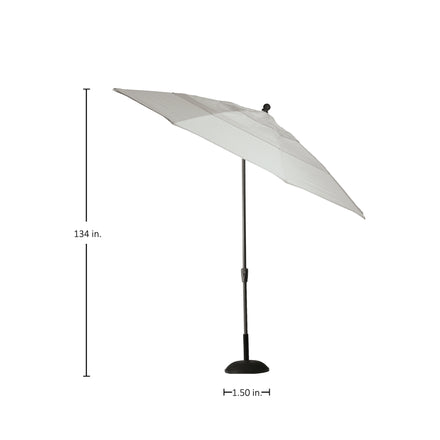 Elevate your outdoor oasis with our 11' Crank Auto Tilt Umbrella, designed for the perfect blend of function and style. Crafted from industrial-grade fiberglass, this umbrella stands at 102" tall and spreads to a generous 121" diameter, casting a wide shade to protect you from the sun's rays at any angle, thanks to its convenient tilt feature. Offered in four sophisticated finishes and numerous fabric choices, it effortlessly enhances any furniture arrangement. For free-standing options, choose between the robust Stained Concrete Base or the versatile Composite Base with Wheels for stability and ease of movement. Pair it together with any Summer Classics tables over 42" in diameter with umbrella holes and any of our umbrella bases for ultimate comfort and protection.