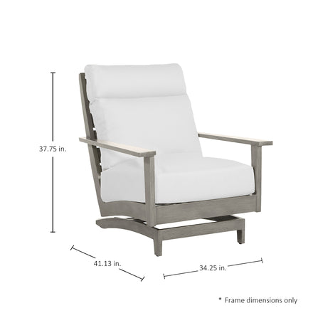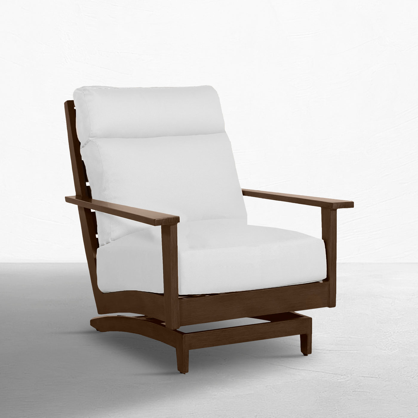 The Kennebunkport Spring Lounge is a fusion of luxury and comfort designed for the discerning eye. The spring mechanism adds a gentle rocking motion, creating an inviting place for relaxation or conversation. Its wrought aluminum construction ensures durability, while the architectural-grade powder-coated finish offers a lasting hue resistant to the elements. This lounge is not just a seat but an experience, offering a touch of serenity and movement to your outdoor haven.