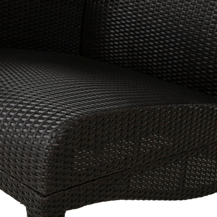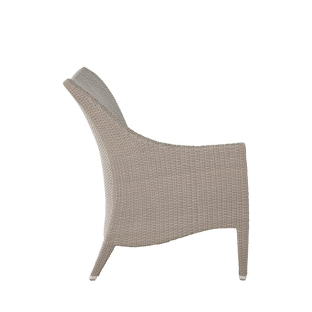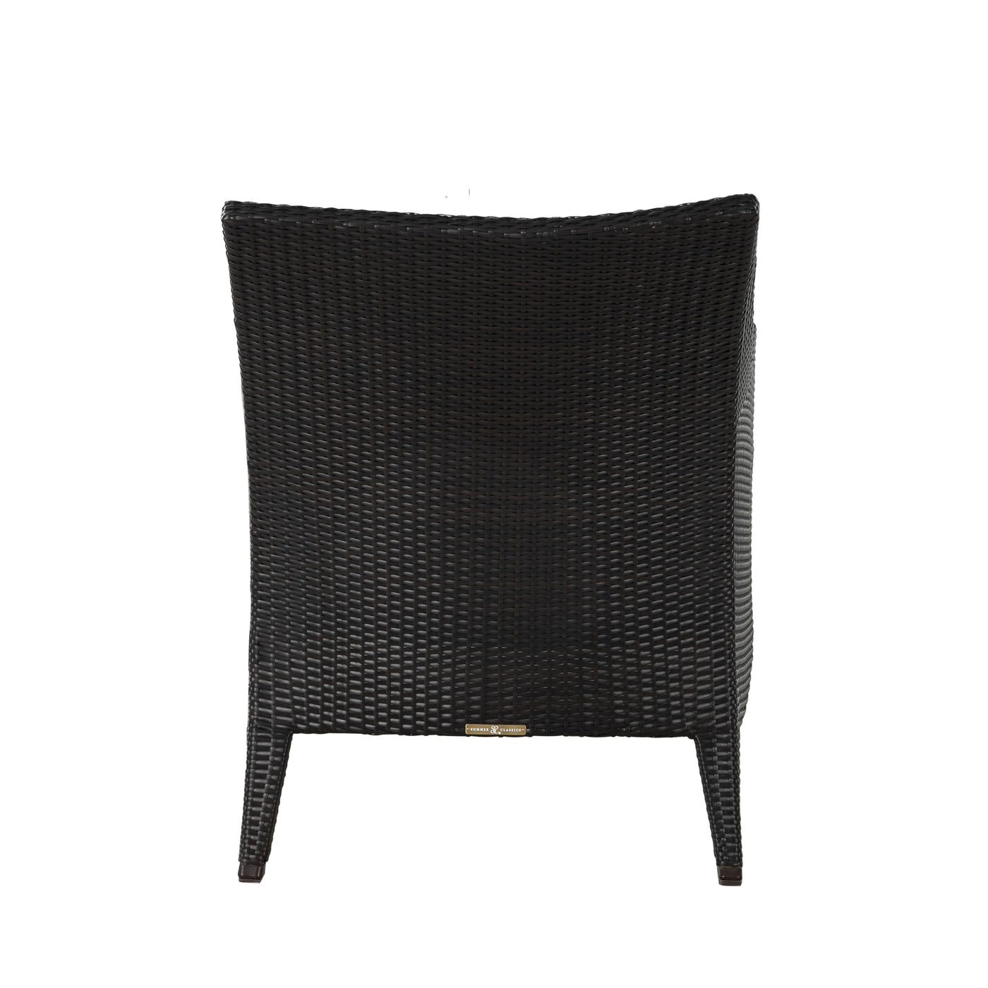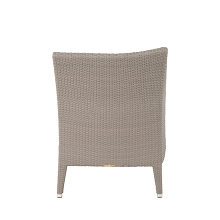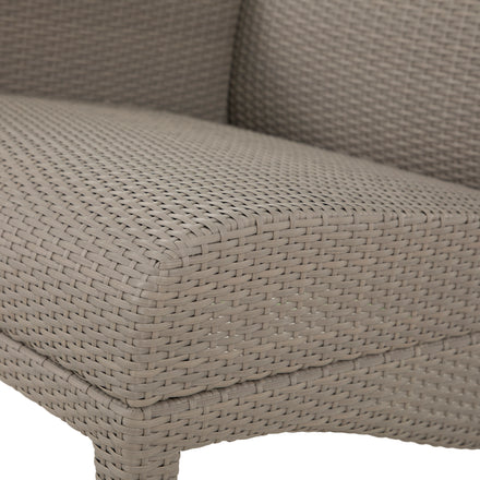 - Upholstered frame in woven N-Dura resin wicker for superior durability and texture