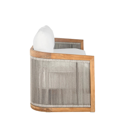 Introducing the Avalon Sofa, a sophisticated blend of teak and olefin rope that embodies style and durability. This sofa features a distinctive barrel back design that extends to the ground, showcasing an Indonesian natural teak frame, which makes for comfortable arm rests. The woven olefin rope is exceptionally durable, resisting moisture, UV rays, and mildew, making it ideal for outdoor use. The low back design of the sofa adds visual intrigue as the teak frame nearly converges at the back. Plush cushions provide exceptional comfort, with the back cushions sitting higher than the sofa's back for enhanced support. The frame’s seamless semi-barrel shape extends to the ground, ensuring stability and elegance. Elevate your outdoor living space with the Avalon Sofa, where timeless design meets unparalleled comfort and resilience.