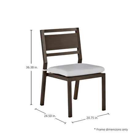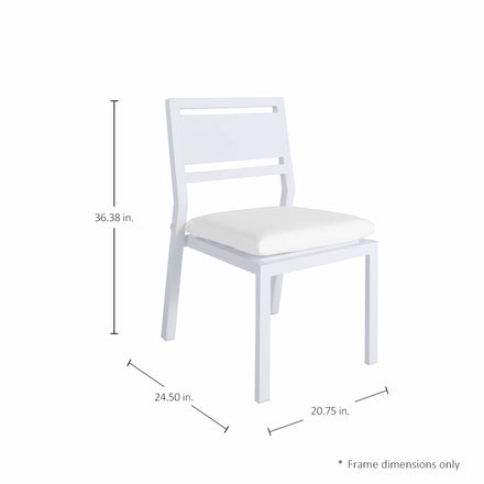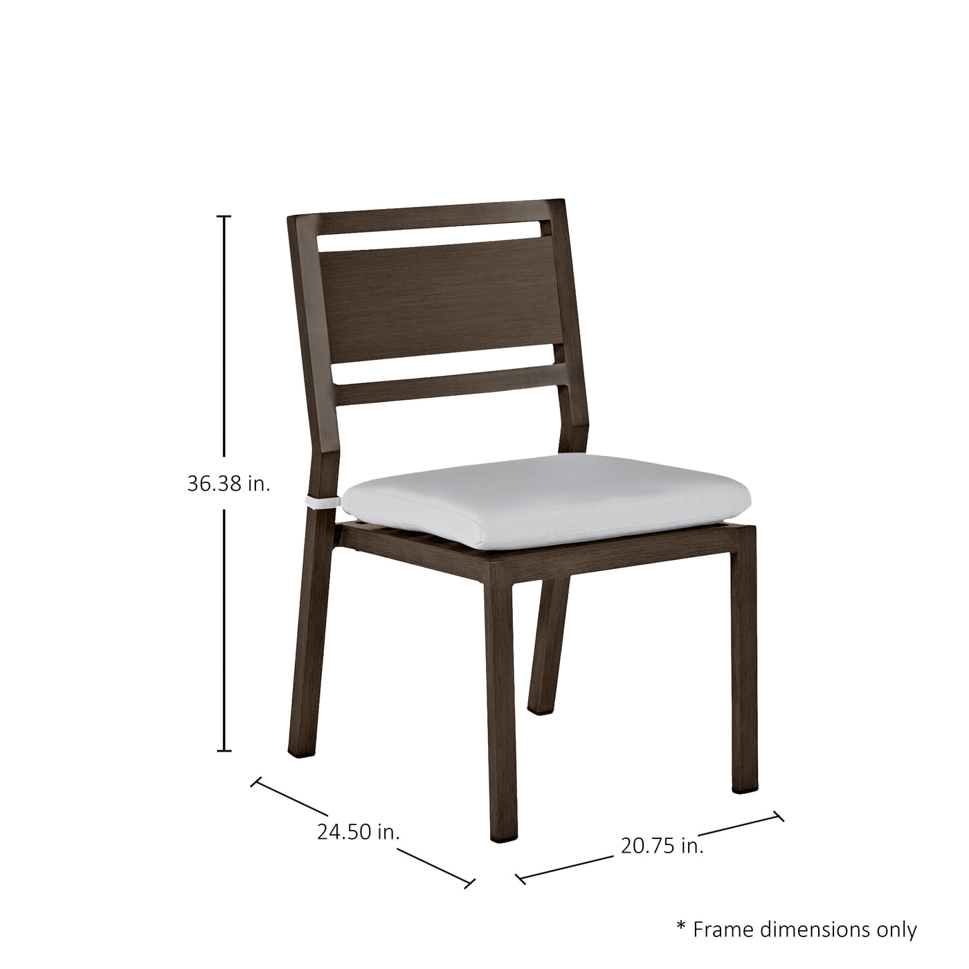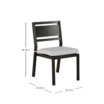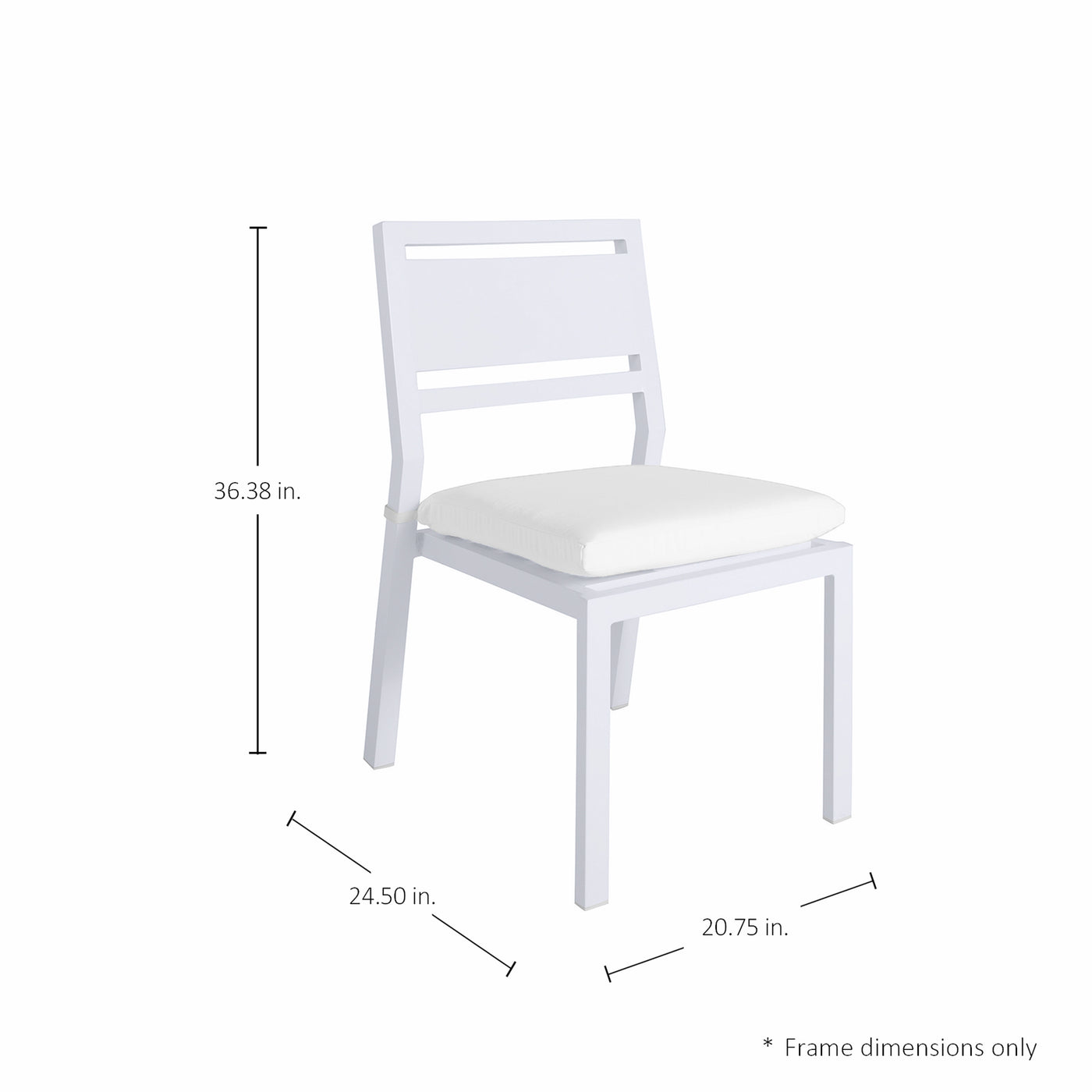 The Avondale Aluminum Side Chair features a classic mid-century modern design with deep seating and simple lines. Made of premium wrought aluminum and finished with a durable powder-coating, this stylish chair is built to last for years of outdoor enjoyment. This chair mixes well with aluminum dining pieces, accent tables, and a variety of other outdoor styles. Designed for both comfort and practicality, this dining chair is also stackable, allowing you to easily store multiple chairs when not in use. This item is designed to be enjoyed either with or without a cushion. Please designate your choice in the below "Select a Cushion" dropdown.