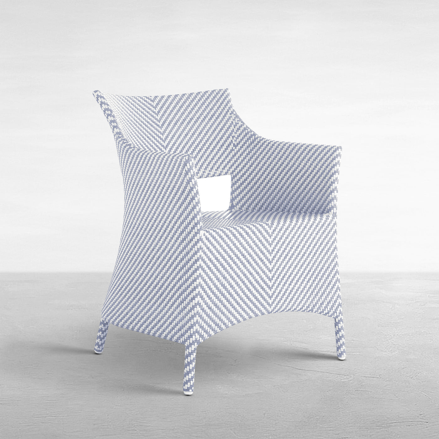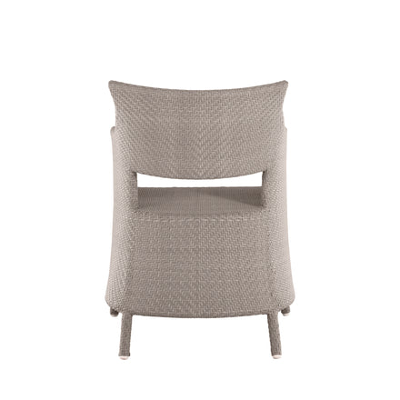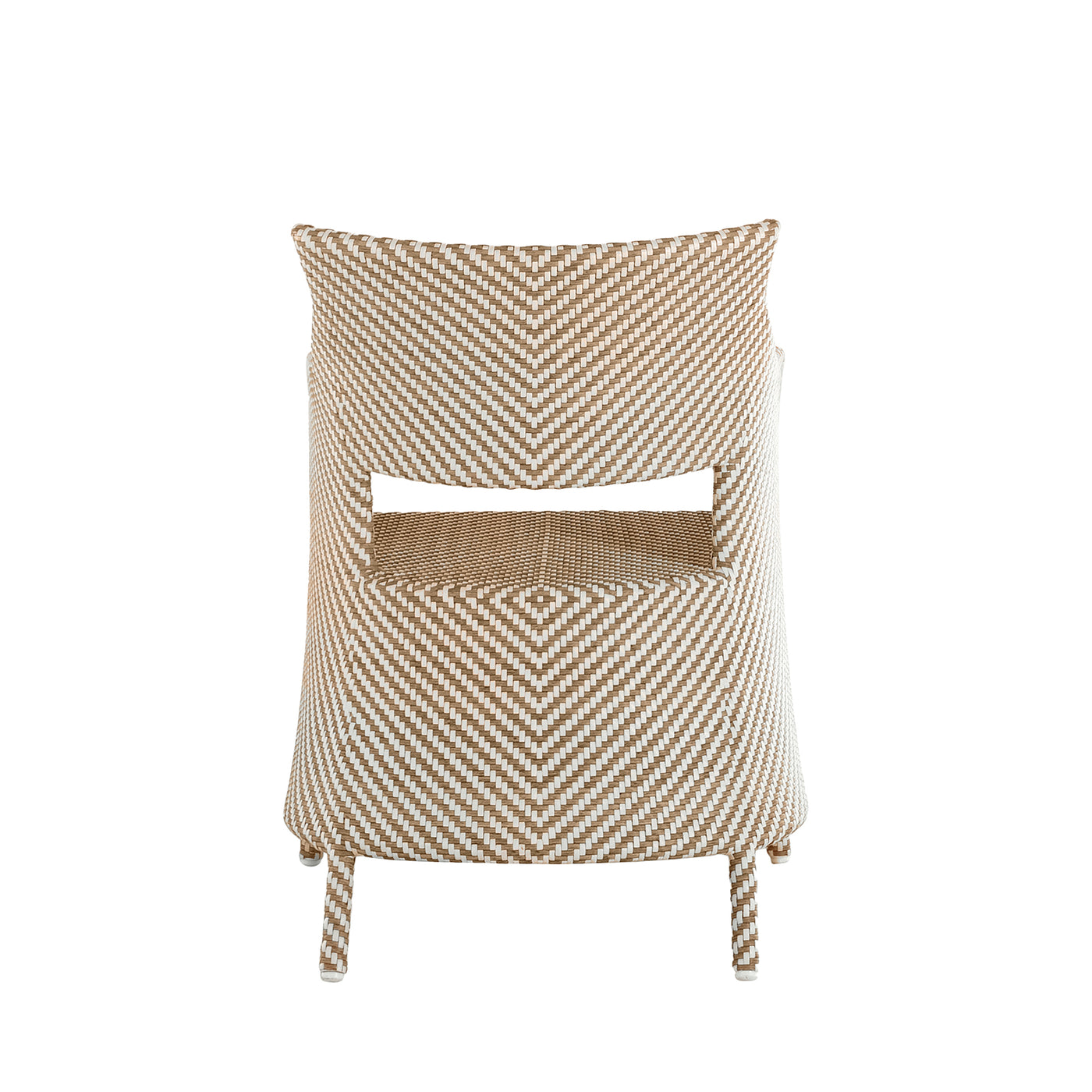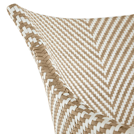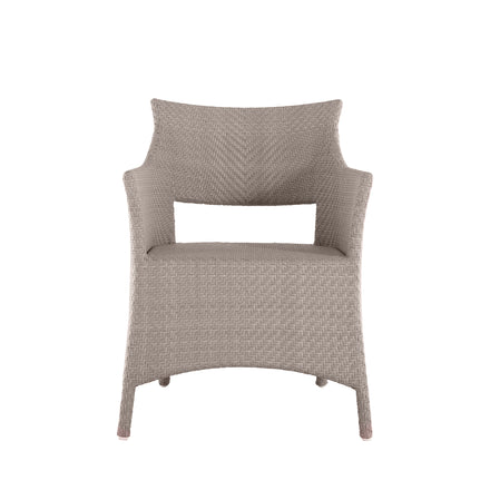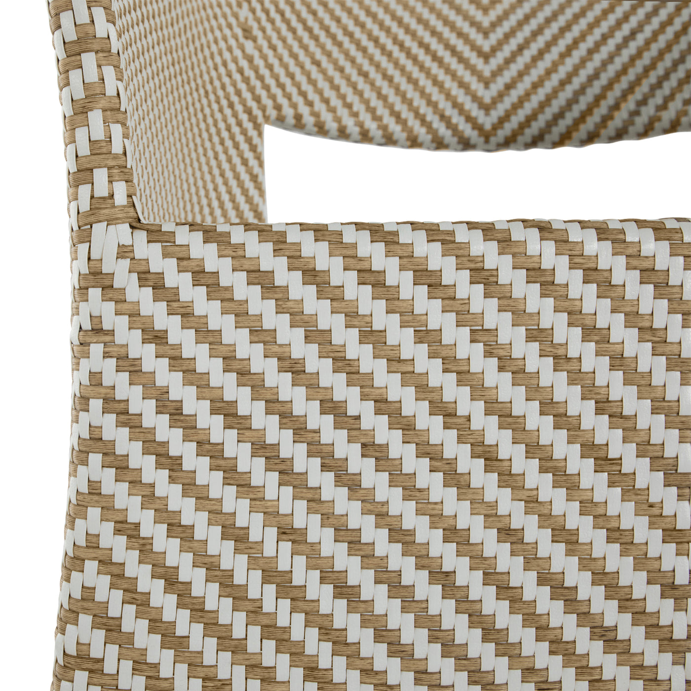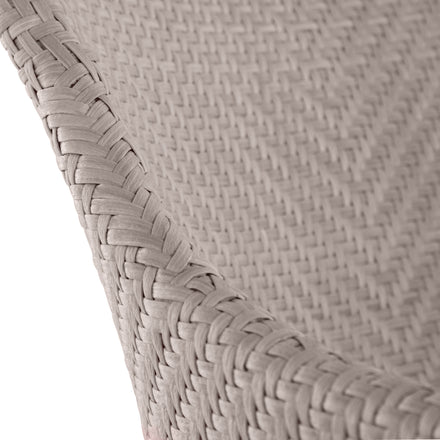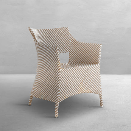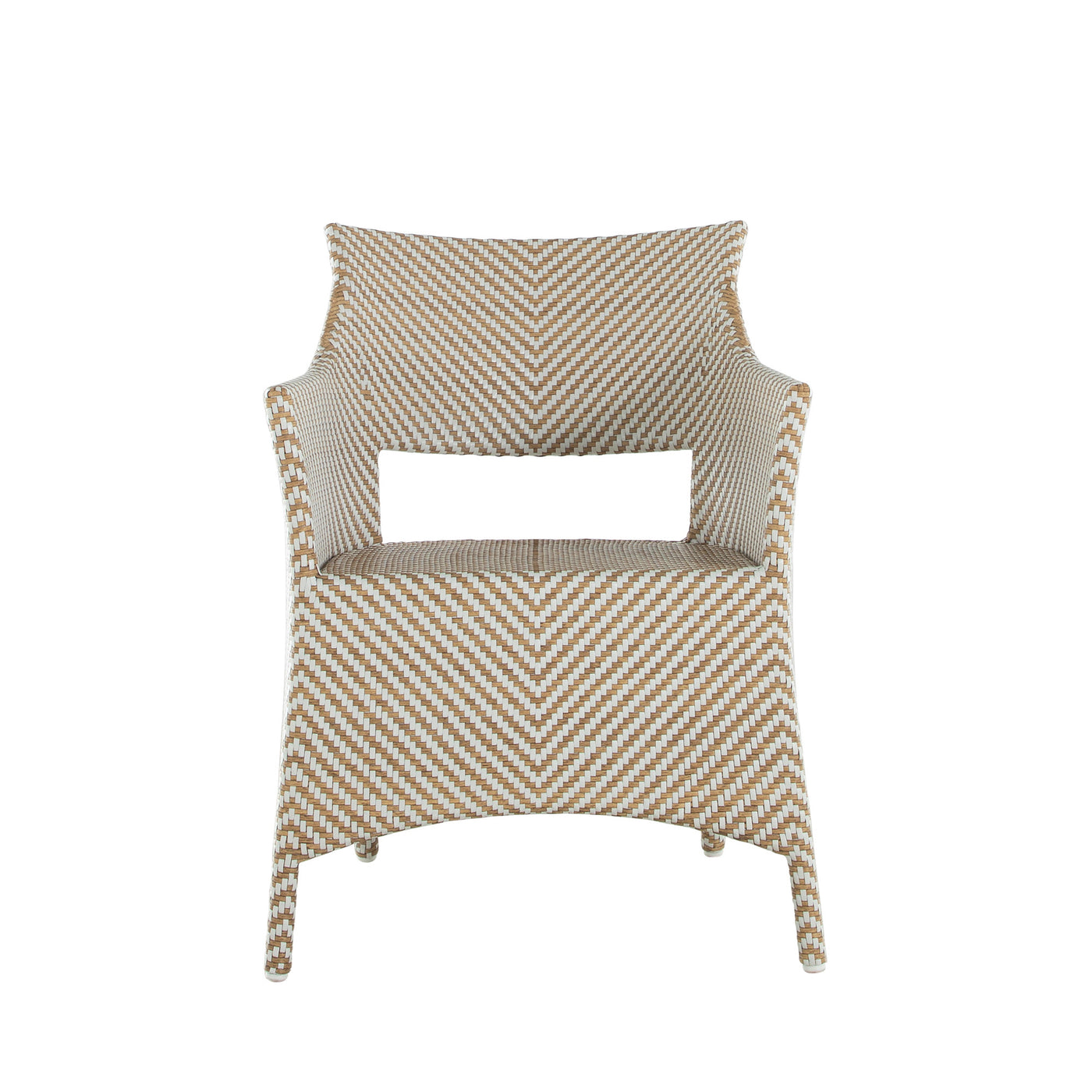 Elevate your outdoor dining with the Bari Arm Chair, featuring a sturdy aluminum frame woven with N-Duraâ„¢ resin wicker in a chevron design. Available in several finishes, this transitional piece combines contemporary style with traditional materials. Cushionless for ease, it's masterfully handwoven for quality, offering a durable, low-maintenance option that adds pattern and sophistication to any space. Our exclusive N-Duraâ„¢ Ultra UV Resistant Resin Wicker sets our outdoor furniture apart with unmatched durability and UV protection in the industry. This item is designed to be enjoyed either with or without a cushion. Please designate your choice in the below "Select a Cushion" dropdown.