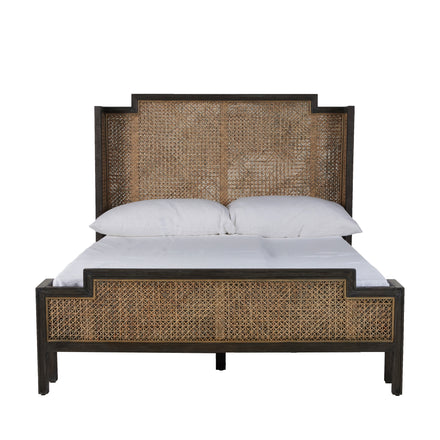 Camille Natural Rattan Wood Transitional Cane Bed - Queen, Brown