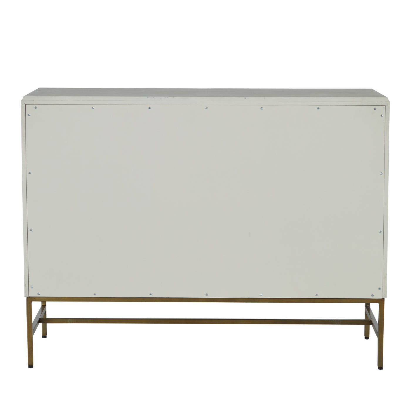 - Finished in cerused white, offering a clean, sophisticated backdrop for any space