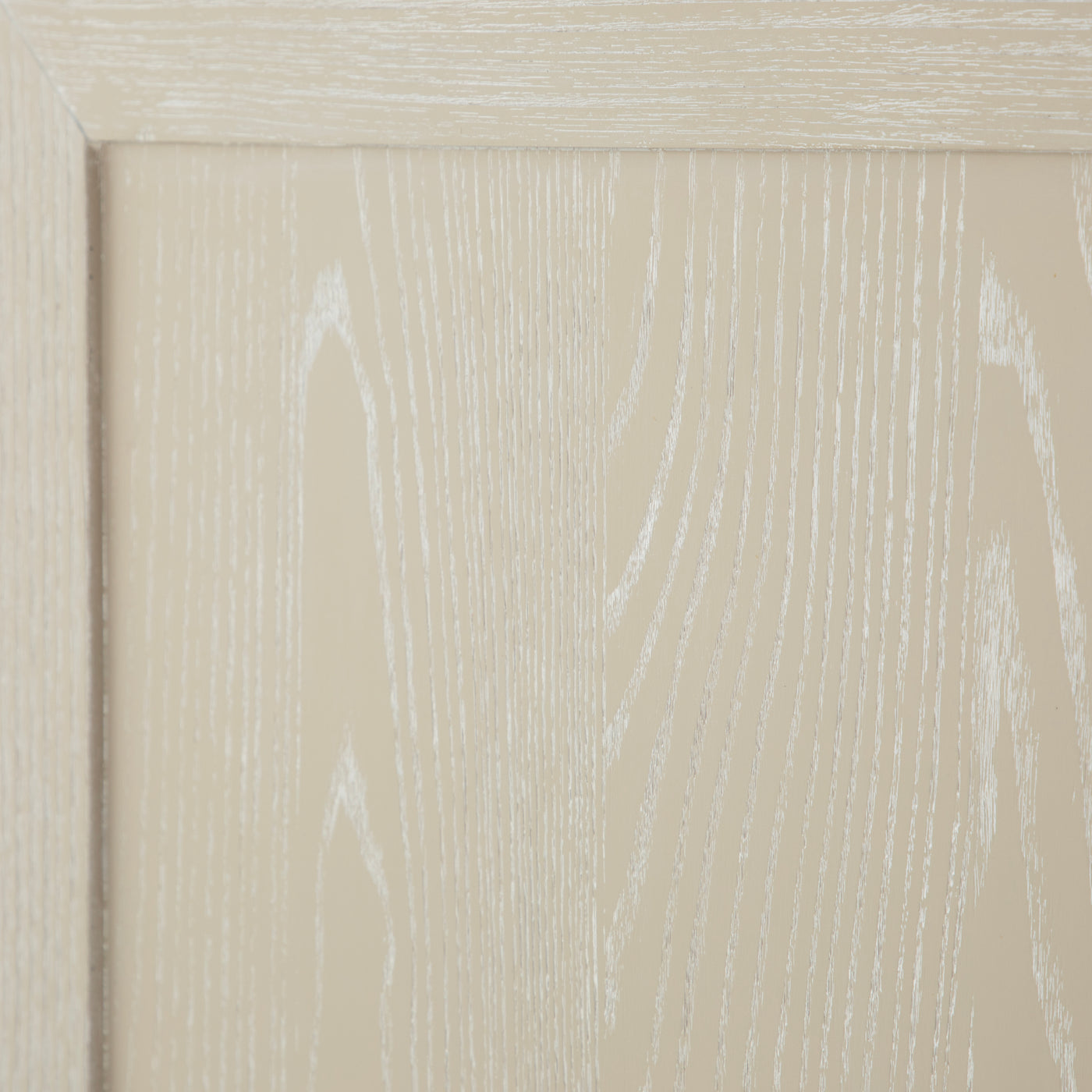 - Cerused white finish highlights the woodgrain and adds timeless appeal