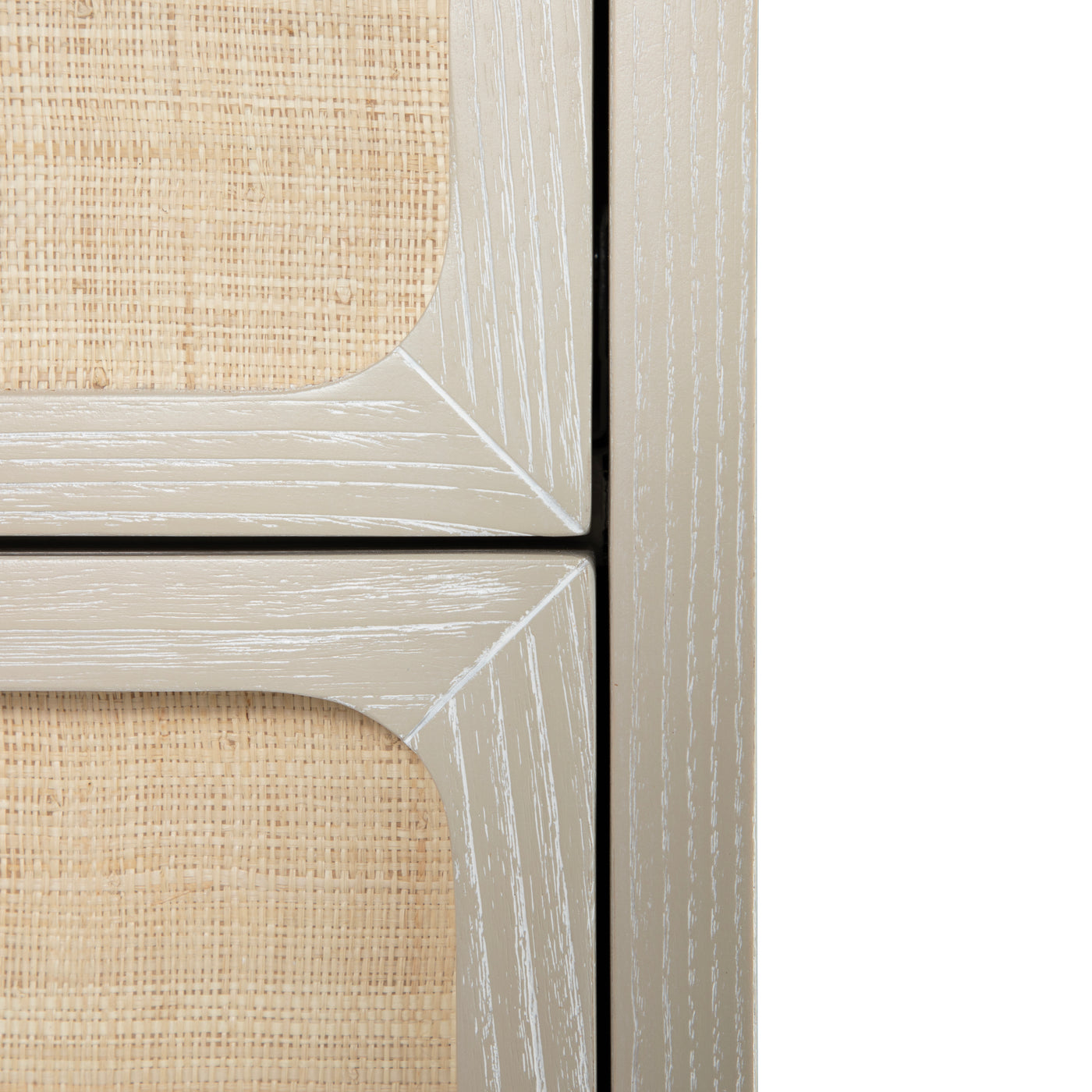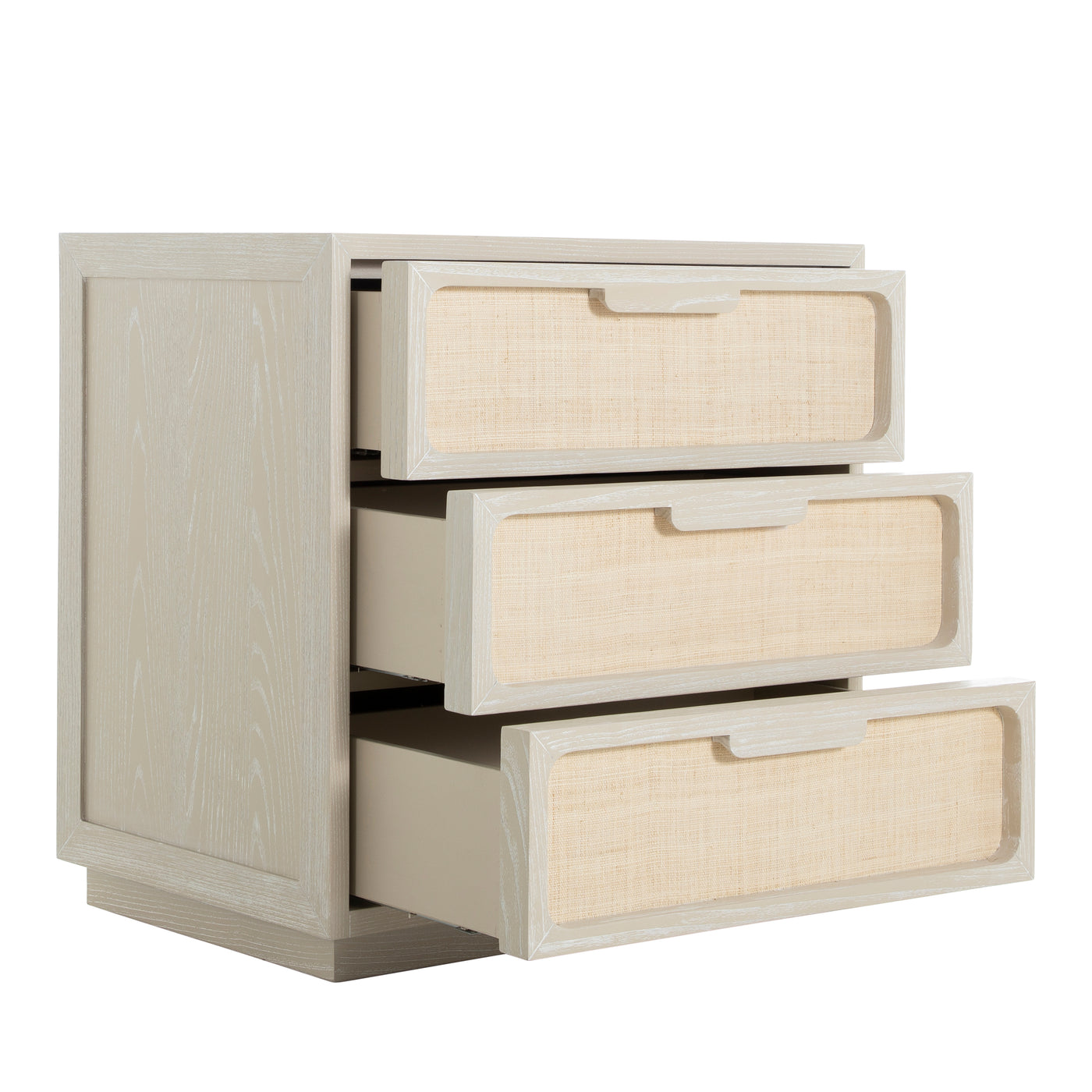 Serini Wood Seagrass Transitional Nightstand - 3 Drawers, Ceruse White