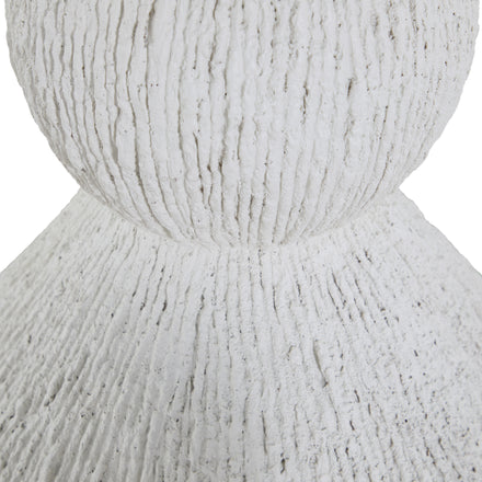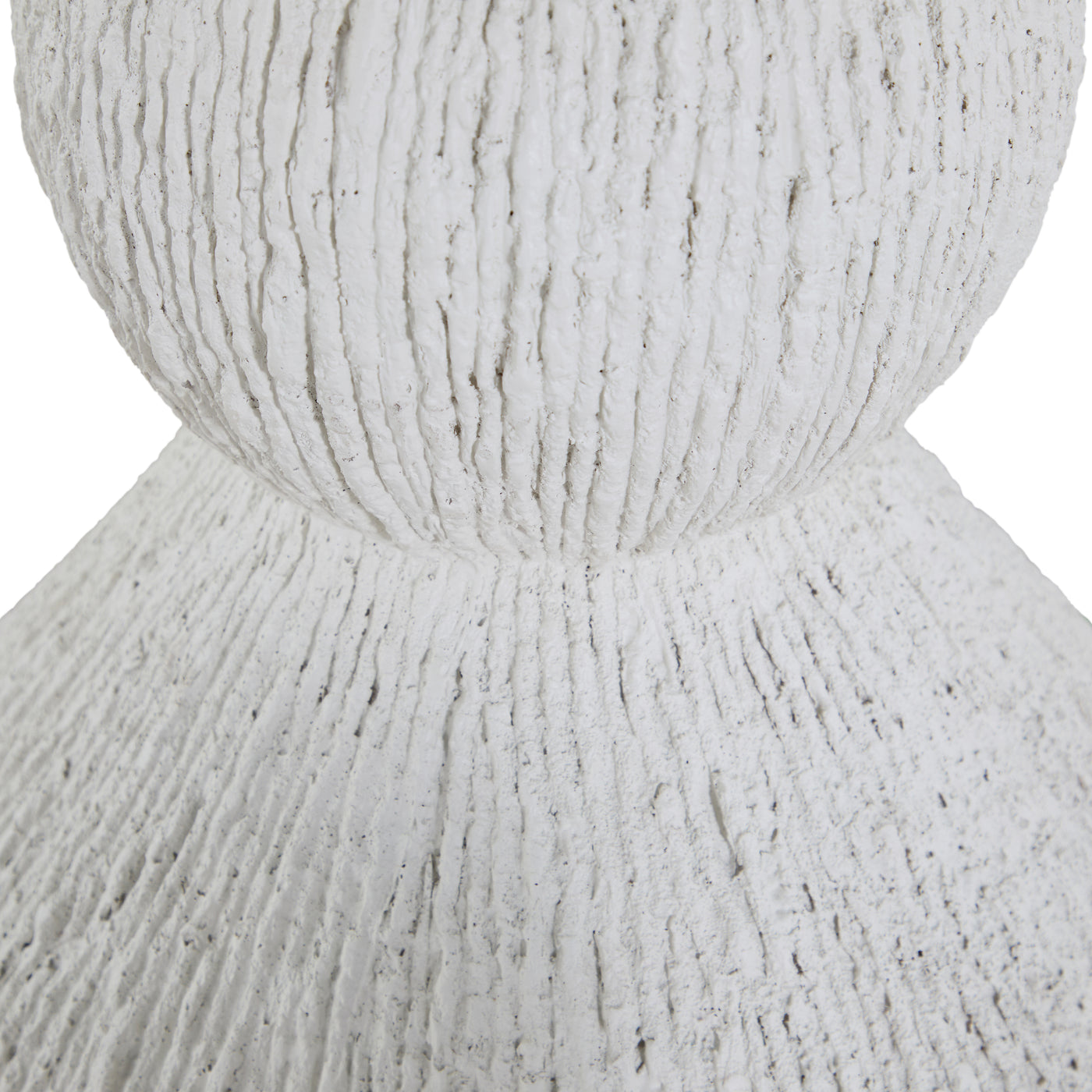 - Sculptural pedestal with ribbed texture adds depth and artisanal detail.