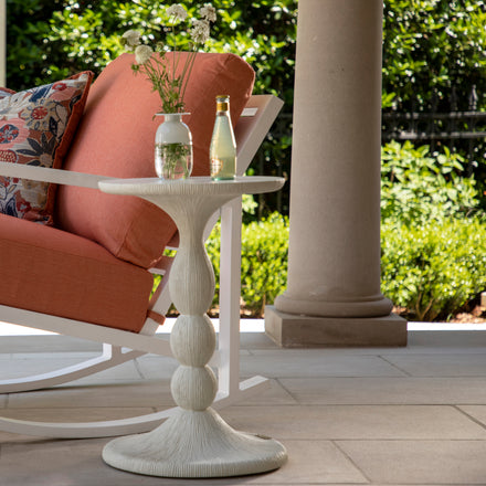 The Tern Side Table exudes a playful elegance with its whimsical silhouette that combines the classic with the contemporary. Cast in a serene natural white or aged stone grey finish, its robust cast stone form is crafted with delicate striations, giving the piece a textured look that mimics intentionally carved stone. The Tern Side Table is not just a functional surface but a sculptural statement, embodying both the art of design and the steadfastness of quality craftsmanship.