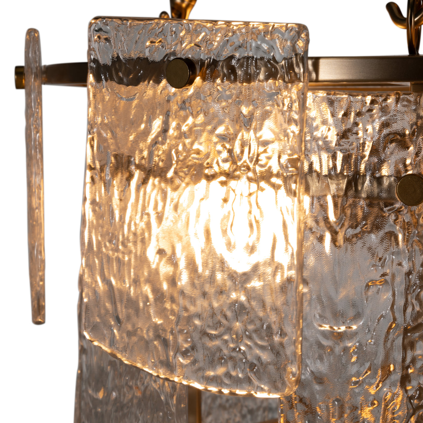 - Textured cast glass panels diffuse light softly and evenly to create a warm, ambient glow with striking visual depth