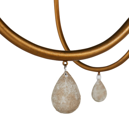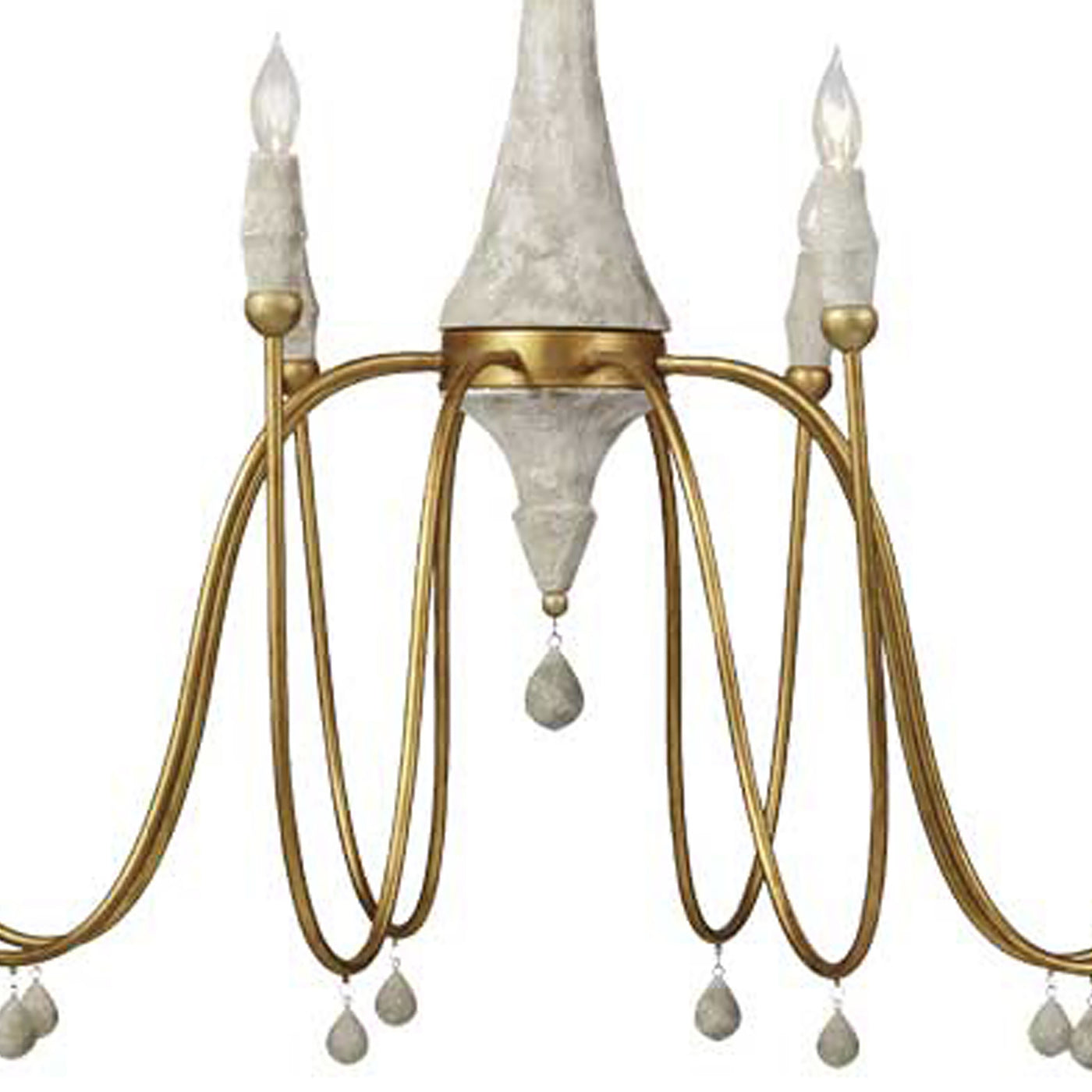 - Delicate distressed ivory teardrop accents add subtle detail and elevate the chandelier’s refined design
