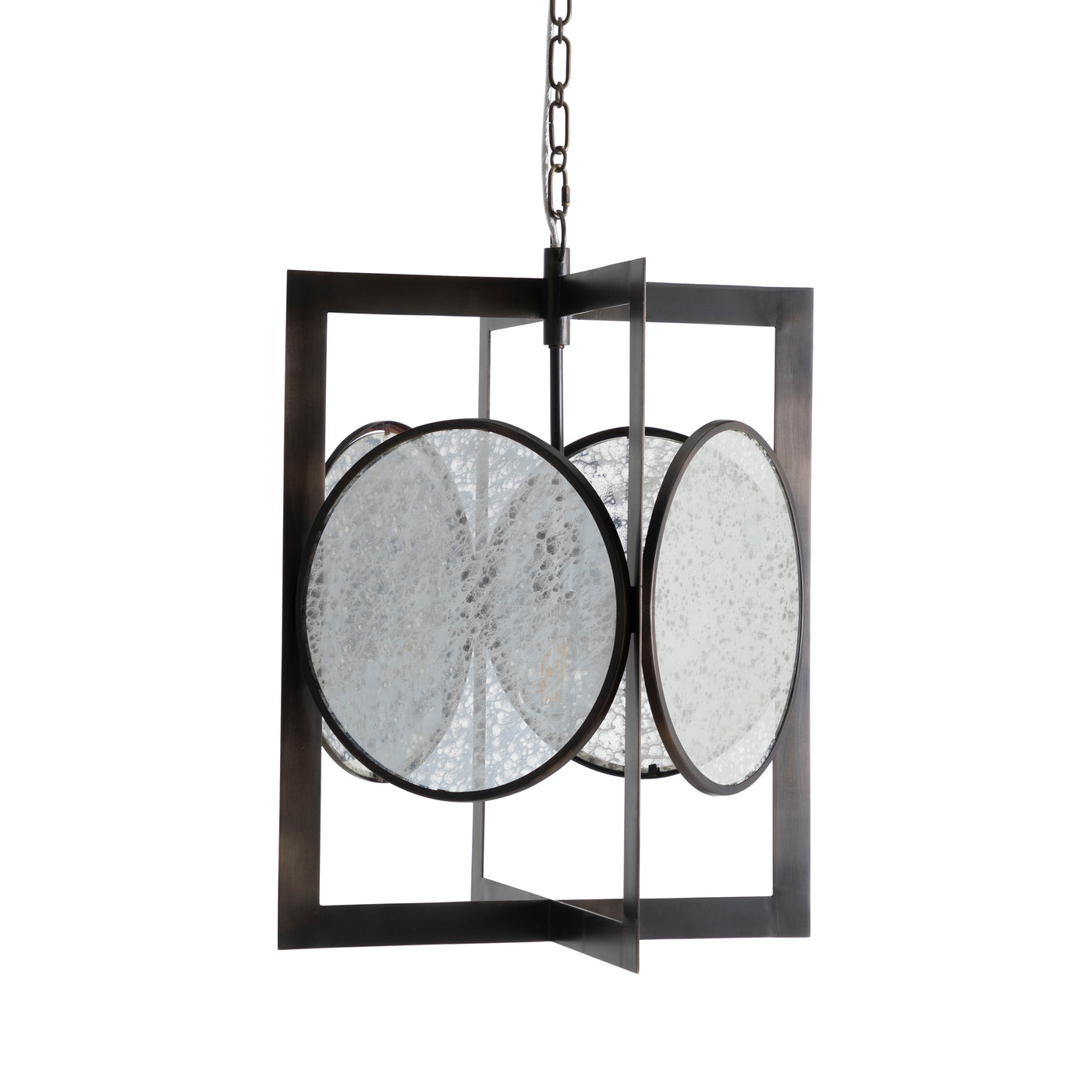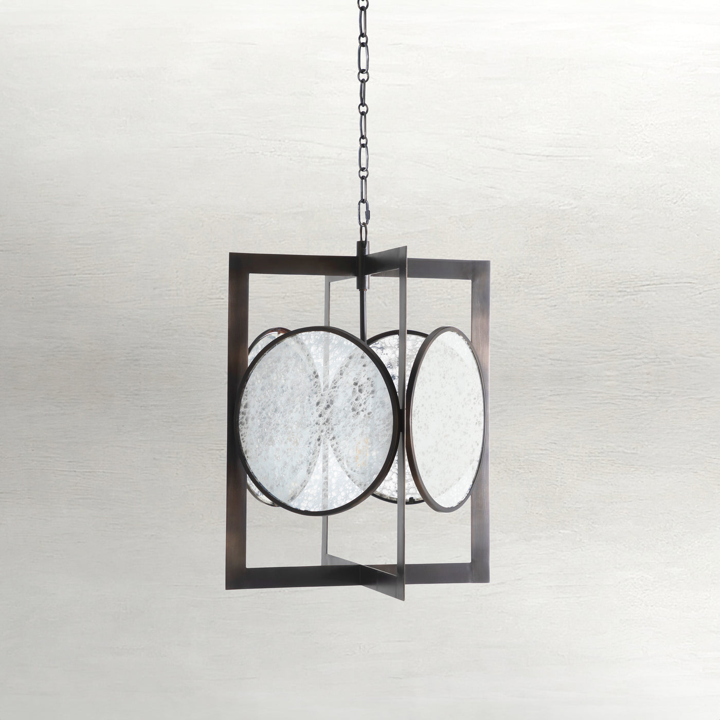 The Clove Pendant is a large and captivating lighting piece that boldly combines contemporary design with an artistic flair. Featuring a geometric frame that encases spherical mercury glass, this pendant creates a stunning visual effect. The rubbed bronze finish adds a touch of elegance, while the unique arrangement of shapes brings a timeless, sculptural quality to the fixture. The Clove Pendant is designed to be a focal point that enhances any interior with its sophisticated and eye-catching design. Also available in a brushed brass finish.