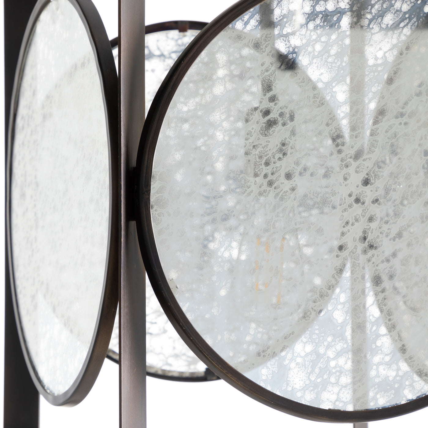 - Built with a bold geometric frame and spherical mercury glass for a durable structure with captivating visual depth