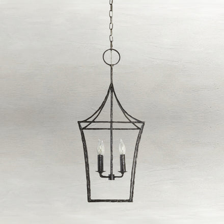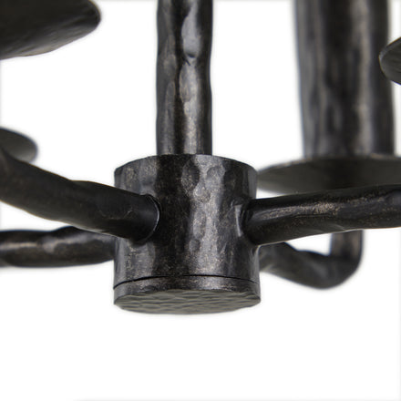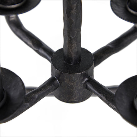 Illuminate your space with the striking beauty of our Clover Pendant. Available in both a large or small size variation to fit your space's needs. The hand forged matte black iron finish and intricate detailing offer a bold aesthetic, perfect for adding character and warmth to any room.