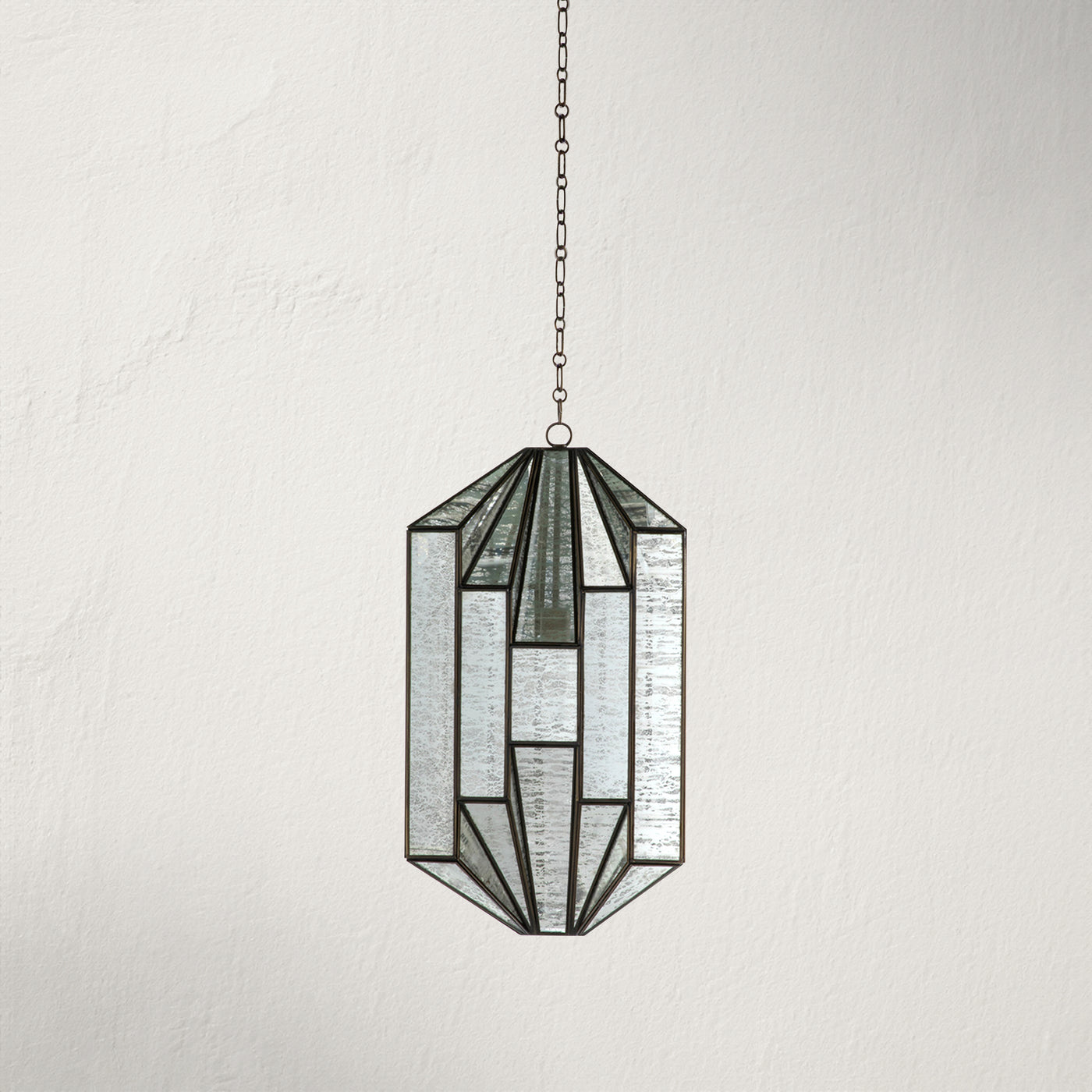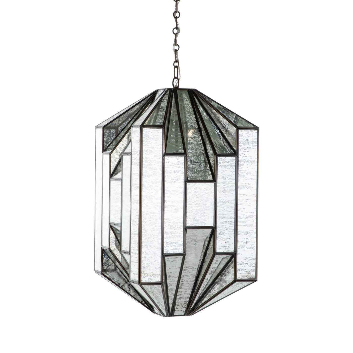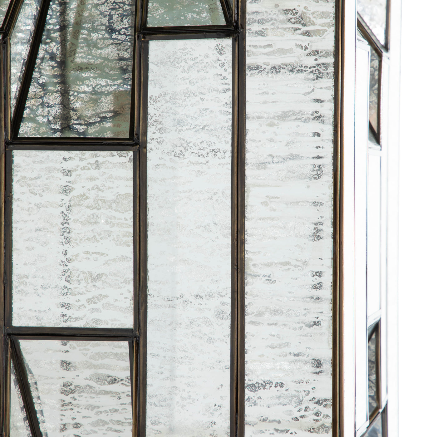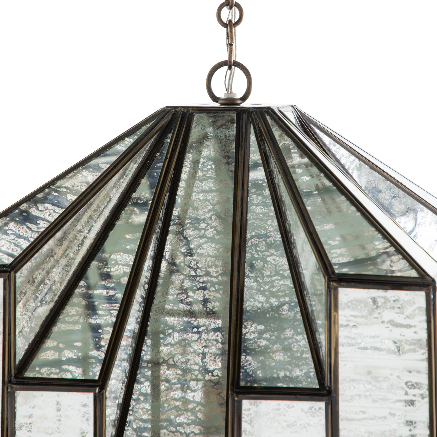 Intriguing planes of mercury glass shimmer and shine in the Emilio Pendant. The metal framework, finished in a dark, antiqued brushed brass, complements the reflective surfaces, adding to its timeless appeal with art deco appeal. This pendant light is perfect for adding a touch of vintage glamour to various settings, including the living room, bedroom, or kitchen.