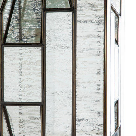 - Faceted planes of mercury glass shimmer beautifully, bringing rich texture and luminous elegance to any space