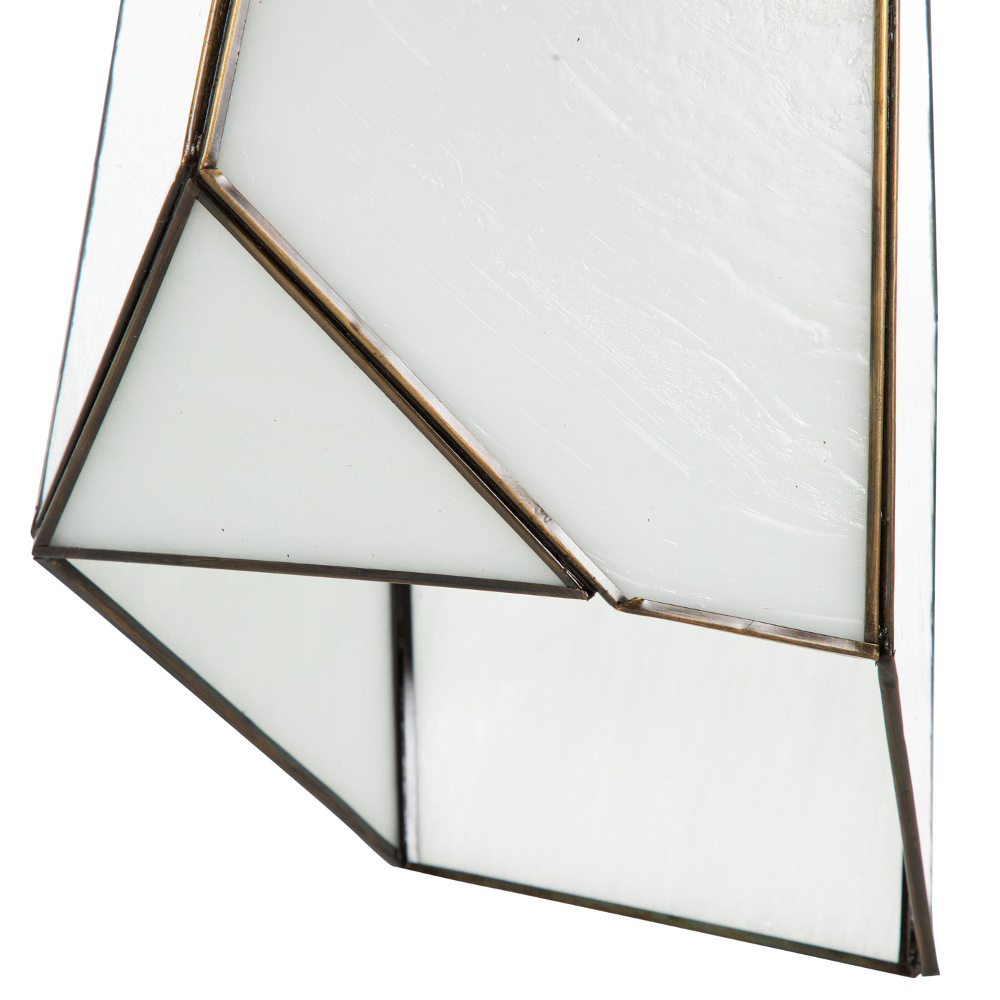 - Glass panels offer a clear and polished look, enhancing the pendant’s refined and sculptural presence