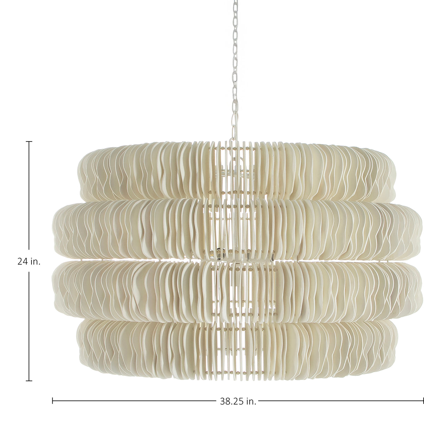 Serena Wood Winter White Round Tiered Chandelier - 38.25 in. D x 24 in. H