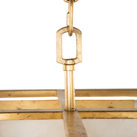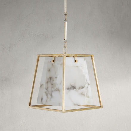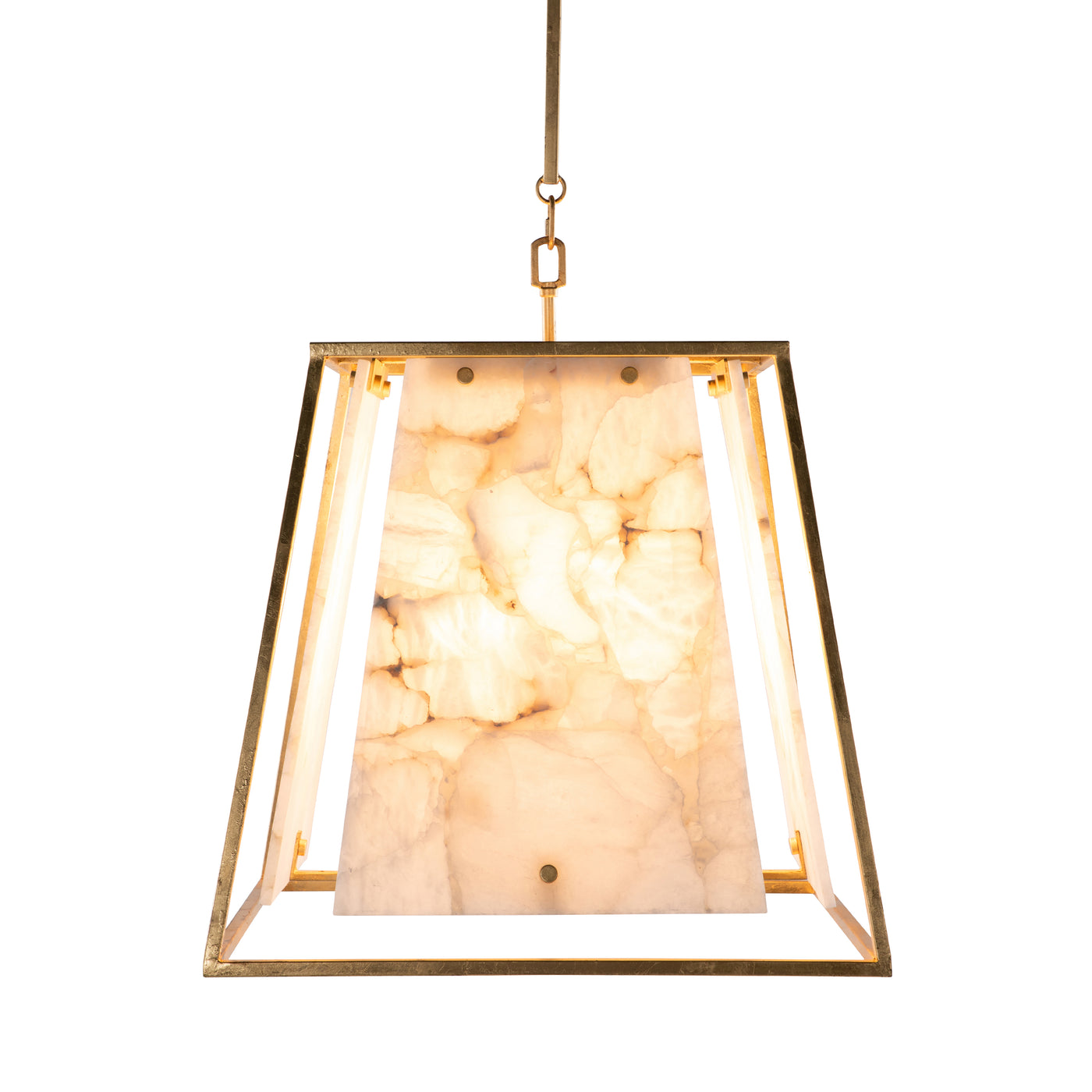 The Stacey Chandelier brings a refined elegance to any space with its rich design and exquisite materials. This chandelier features a geometric frame in a radiant champagne silver finish, which elegantly complements the natural alabaster panels. When illuminated, the alabaster emits a soft, inviting glow, creating a warm and sophisticated ambiance. Perfect for dining rooms, entryways, or living areas, the Stacey Chandelier adds a touch of modern glamour and timeless beauty to your home decor.