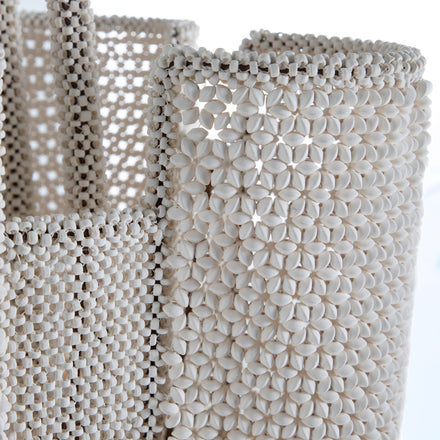 - Organic beaded texture and sculptural silhouette add visual interest and artisanal charm to any space