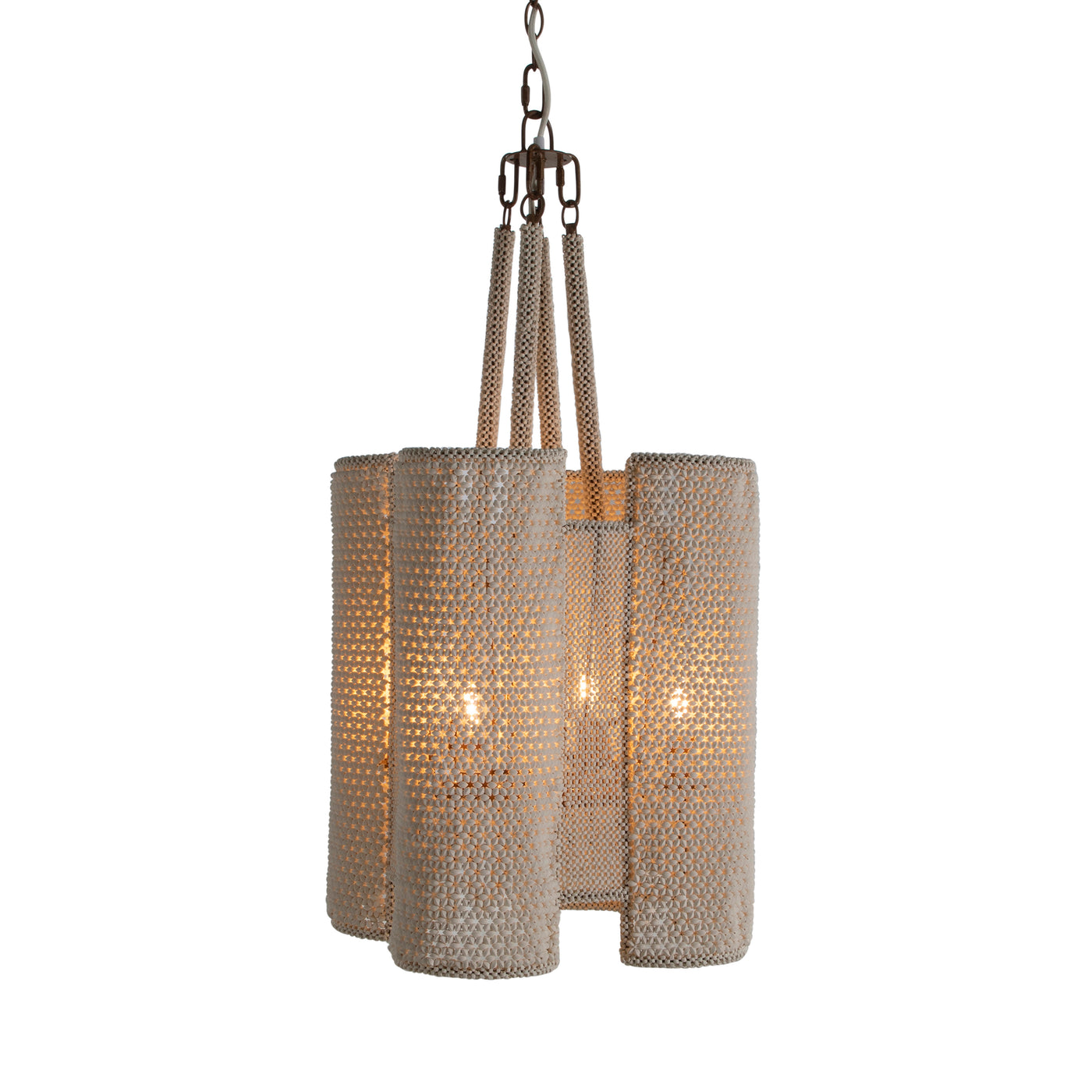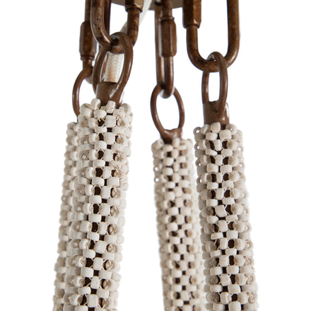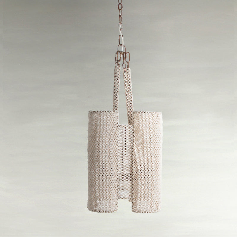 - Modern take on traditional beaded lighting blends texture and form with understated elegance