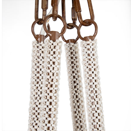 An extension of the beloved Teagan Chandelier, the Teagan Pendant Light distills the same artistry and impact into a smaller, more versatile form. Handcrafted by skilled women artisans, each pendant is made using sustainably sourced, sun-dried coconut shells, with every bead carefully shaped and strung to create a refined, organic texture. Featuring a single-cylinder silhouette, this pendant brings a modern edge to traditional beaded lighting. Its sculptural design adds depth and interest, making it an ideal accent for kitchens, powder rooms, bedside lighting, or in multiples over a dining table or island.