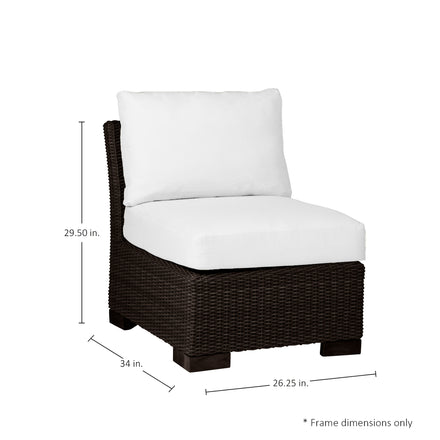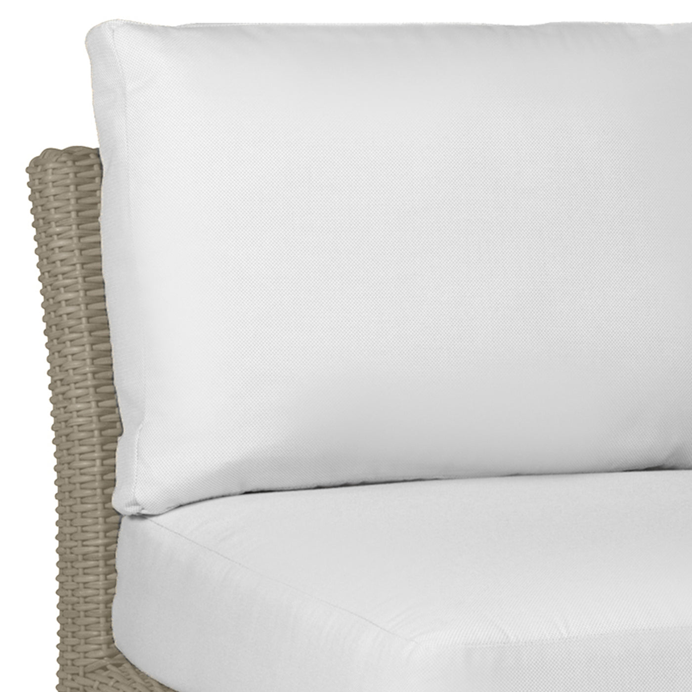 Summer Classics offers outdoor sectional seating designed to fit any space. The Club Woven Slipper Chair combines with other pieces in the collection to form a loveseat or sofa; or use the slipper chair for comfortable stand-alone seating. Crafted from our durable N-Duraâ„¢ resin wicker, this corner sectional piece offers unparalleled UV resistance, ensuring vibrant color and structural integrity even after 4,000 hours of rigorous lab testing. The multi-tonal wicker resists fading, cracking, and peeling, promising longevity and aesthetic appeal far superior to traditional wicker.
