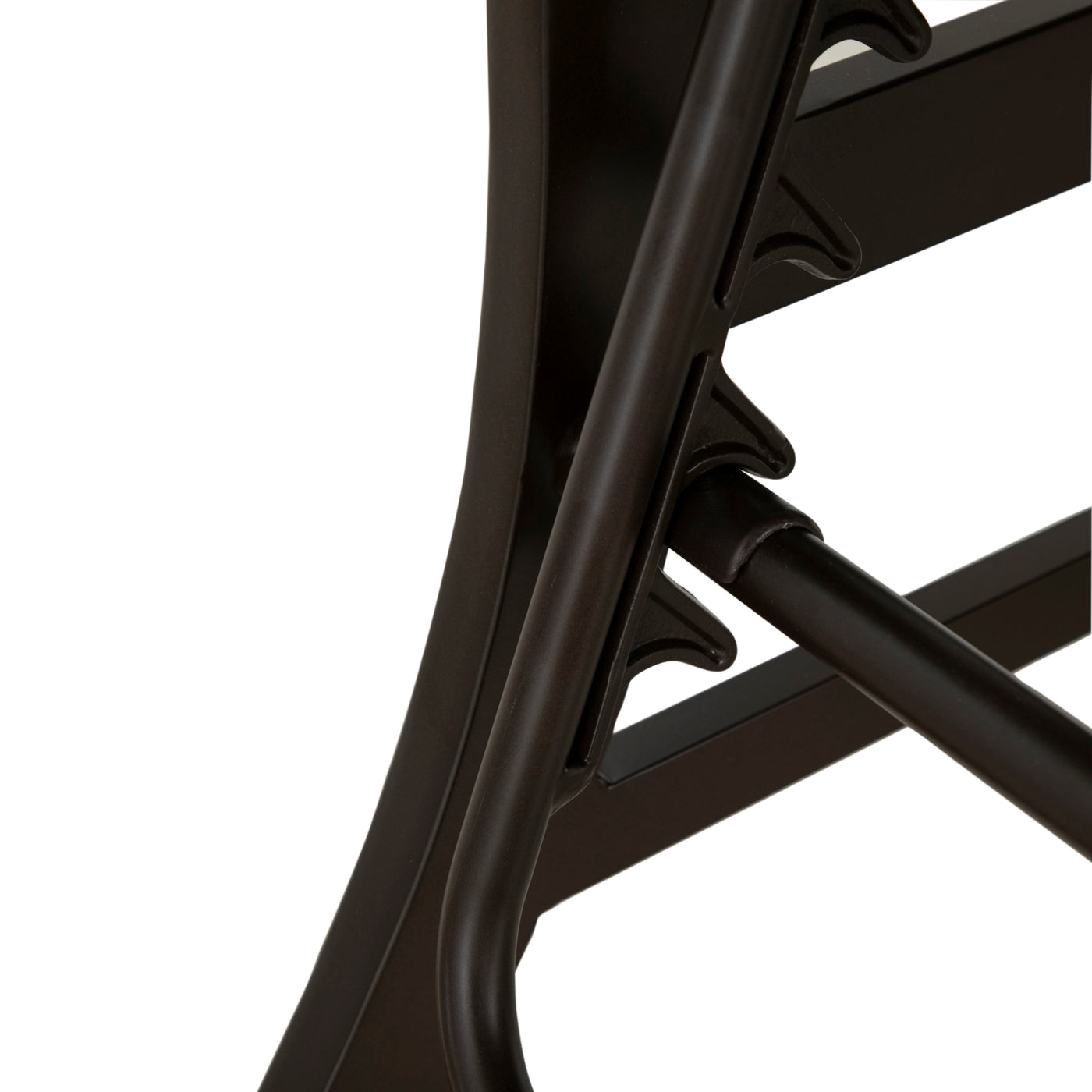- Slatted back and seat offer breathable comfort in warm outdoor settings
