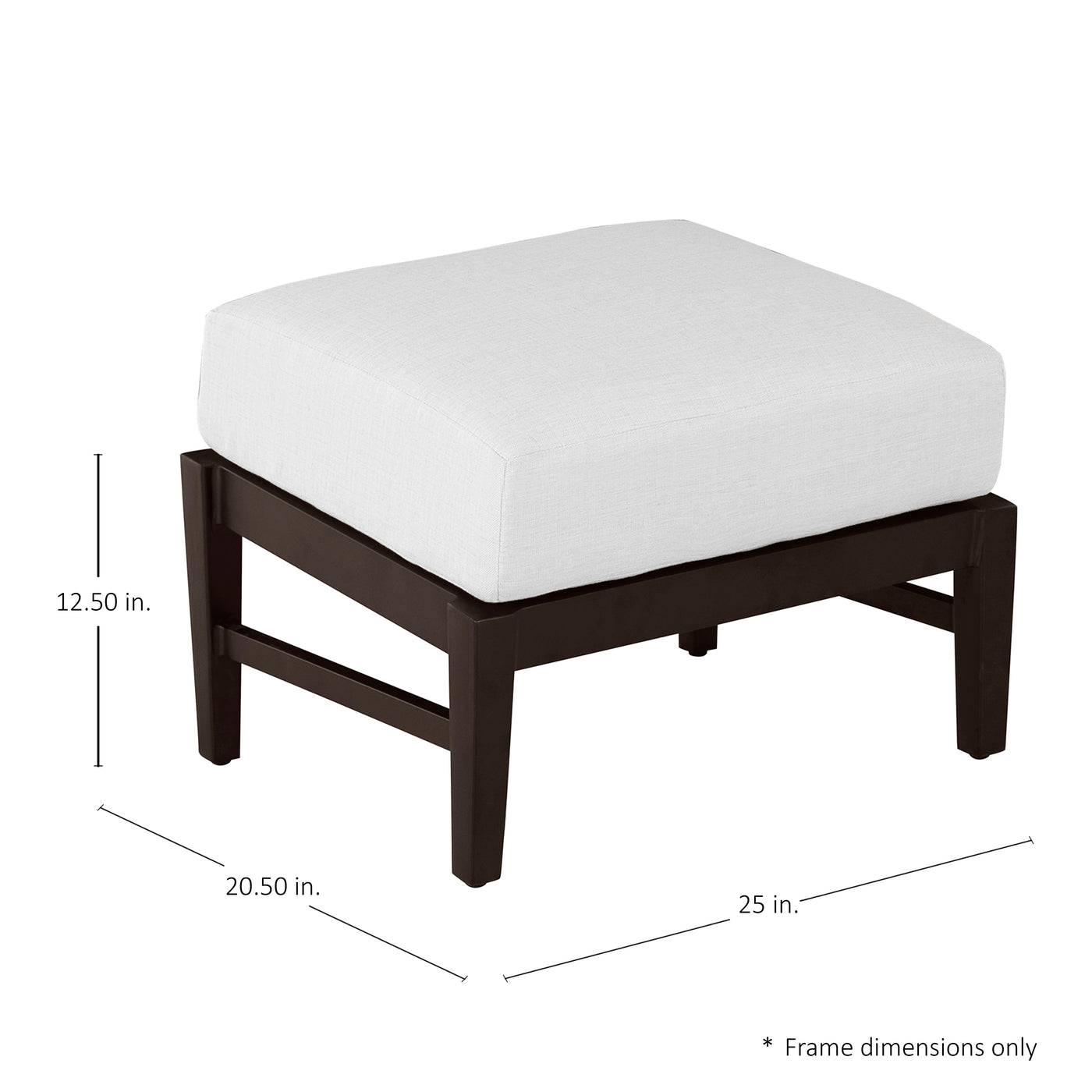 The Croquet Aluminum Ottoman is the perfect partner with a variety of Summer Classics metal patio furniture sets. A slightly sloped square base crafted from sturdy wrought aluminum features a slatted horizontal surface and plush cushion for sublime comfort.