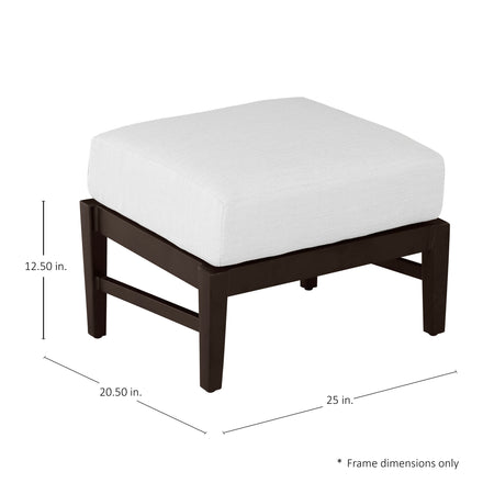 - Designed as a versatile ottoman that doubles as extra seating or a stylish footrest for outdoor relaxation