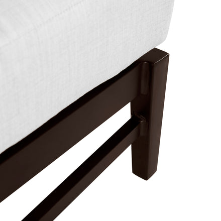 - Gently sloped square base showcases a slatted top and plush cushion for exceptional comfort