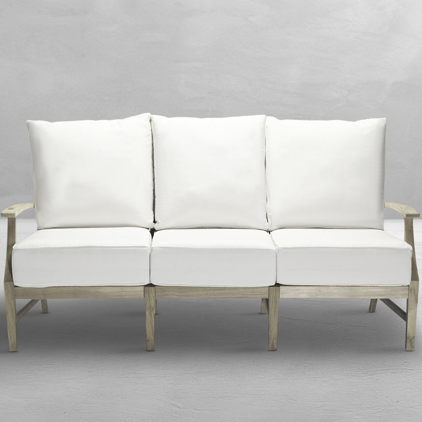 Sturdy, timeless and built for year-round living, our Croquet Teak Collection features a handsome, classic look with its hand carved detailing. Each piece featuring sculpted arms and curved back legs, this outdoor teak collection is made from the plantation-grown and sustainably harvested teak, mortise and tenon construction; and is available in natural teak and our exclusive oyster teak finish, which was designed to mimic the silvery-gray patina teak develops as it ages over time.