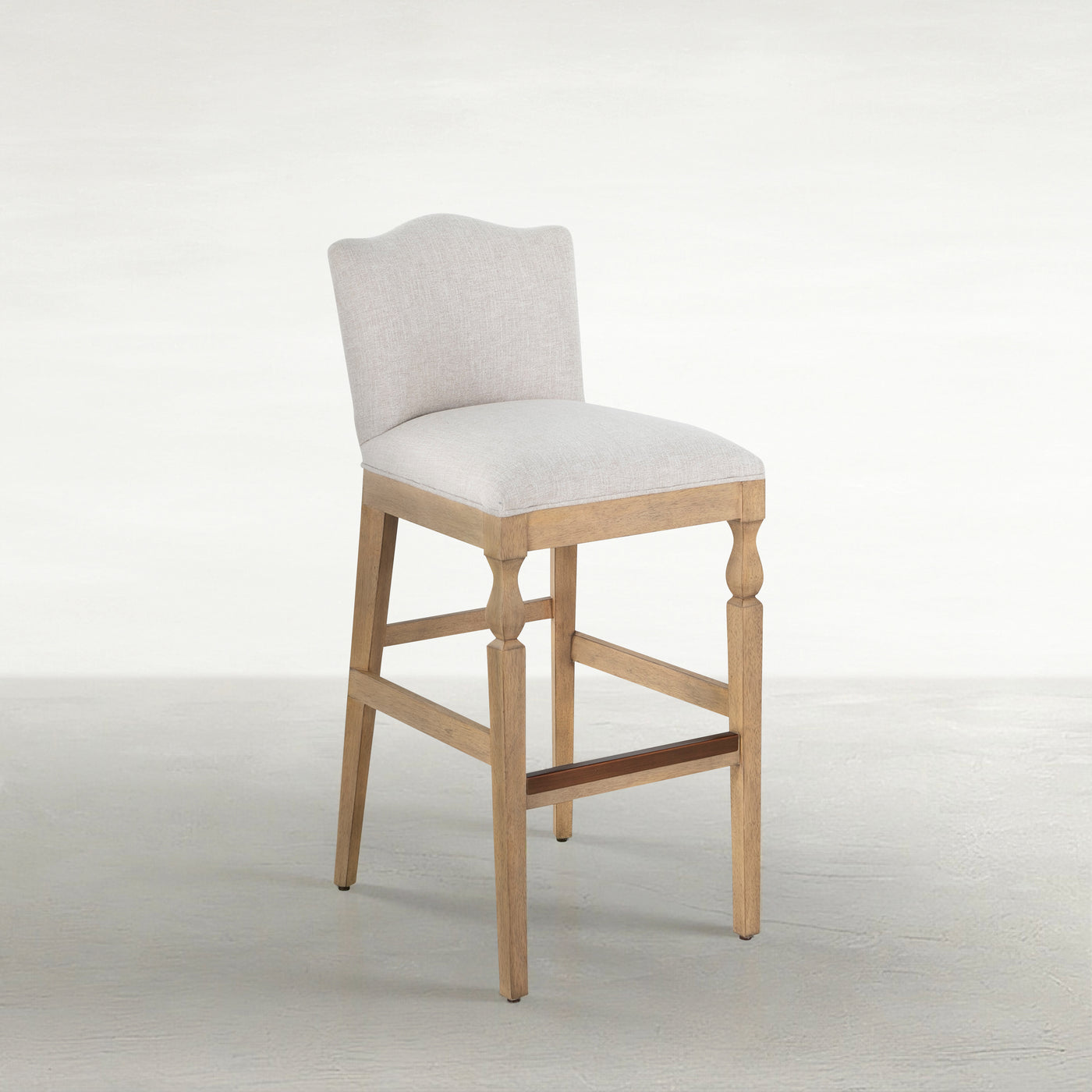 The Gaston Barstool offers a perfect blend of casual elegance and everyday practicality. Crafted in a rustic French Oak finish, its solid wood frame showcases traditional detailing with updated lines. The cushioned seat and gently curved back are upholstered in Slipaway Sand - an easy-care, stain-resistant fabric designed to perform beautifully in busy spaces.
