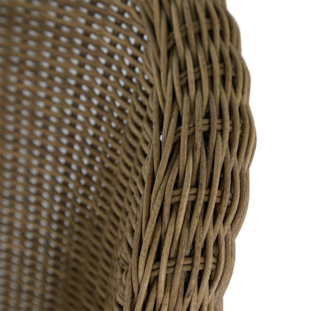 - Handwoven N-Dura™ resin wicker on a powder-coated wrought aluminum frame.