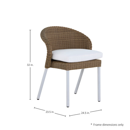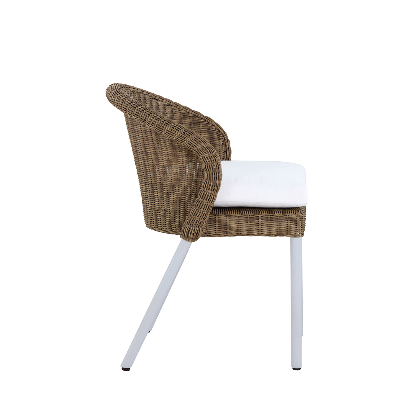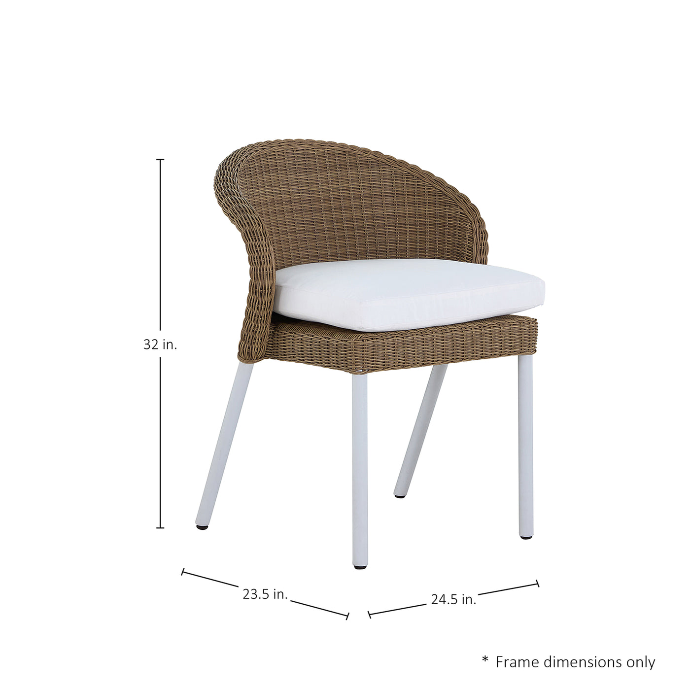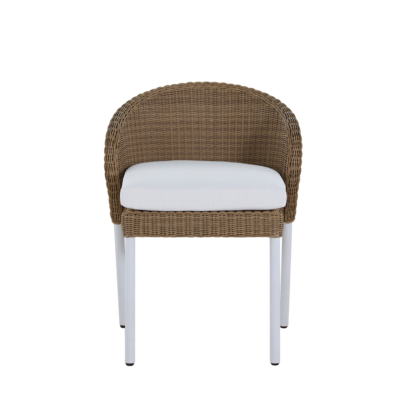 Designed for stylish versatility, the Dune Stacking Side Chair pairs timeless texture with modern functionality. Its contoured back and breezy open weave are crafted from weather-resistant N-Dura™ resin wicker in a natural rattan finish, supported by a crisp Chalk white wrought aluminum frame. Lightweight and easy to stack, it’s perfect for flexible seating in both residential and hospitality settings—combining everyday comfort with breezy, coastal-inspired design.