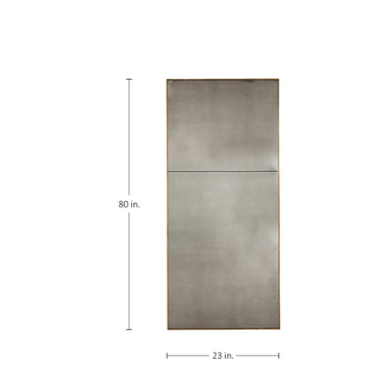 The Tara Narrow Mirror is a sleek, elongated statement piece, measuring 23 inches wide by 80 inches tall. Its antiqued mirror surface provides a vintage-inspired aesthetic, while the champagne-finished frame adds a refined touch of elegance. Perfect for narrow spaces or adding height to a room, the Tara Narrow Mirror brings a sophisticated, timeless feel to entryways, hallways, or bedrooms, creating both visual interest and functionality. Place it near natural light or a lighting fixture to give the space a warmer and sophisticated ambiance.