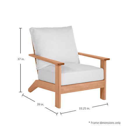 The Ashland Teak Lounge Chair adds luxury to your outdoor living space. The sturdy, teak frame with flat armrests brings indoor comfort to your outdoor space. Ashland's sleek styling makes it a good fit with a variety of outdoor furnishing looks.