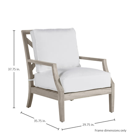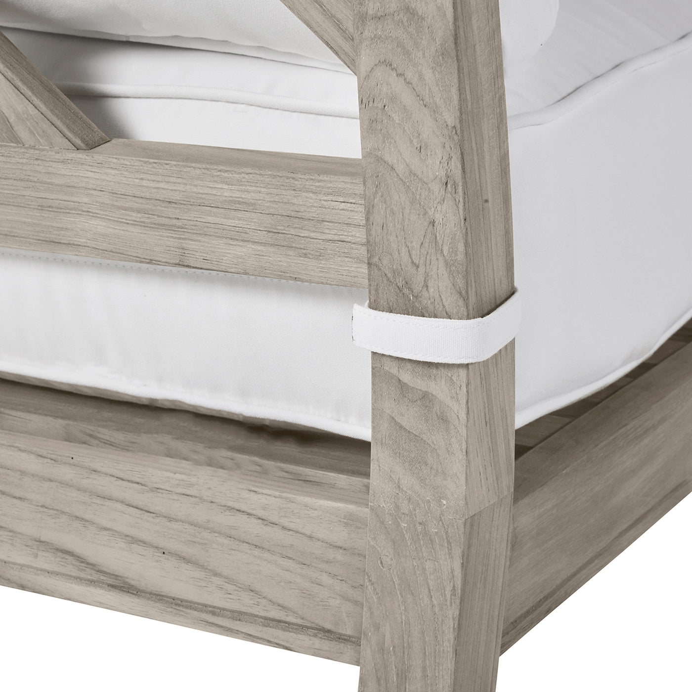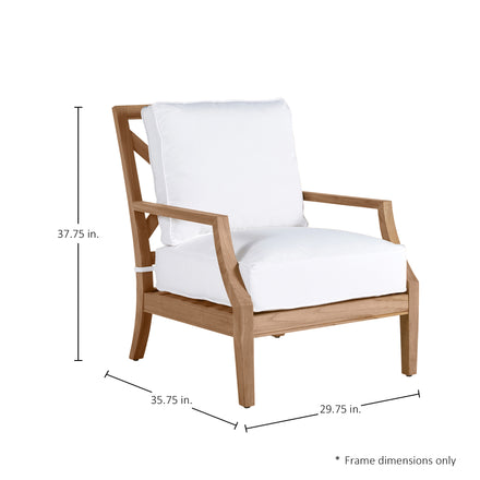 The Haley Teak Lounge Chair brings timeless elegance to your outdoor living space with its trellis-inspired lattice back design and the unmatched durability of premium teak. This lounge chair is a masterpiece of design, featuring the natural resilience and water resistance of teak from Indonesian plantations. The graceful X-back silhouette, accentuated with meticulous notches, blends harmoniously with any teak collection, while the choice of natural teak or the oyster finish adds a layer of classic sophistication. Embrace the lasting luxury of this Grade A teak furniture, knowing that it hails from FSC-certified sources committed to ecological stewardship. Add plush Dream Cushions for ultimate comfort.