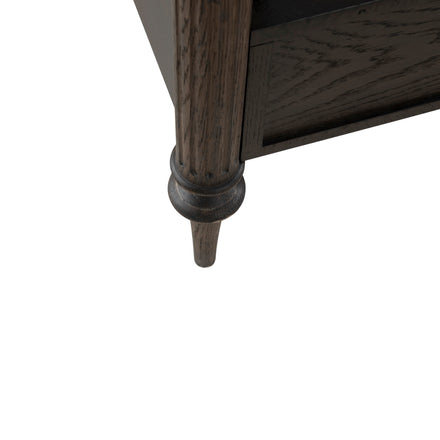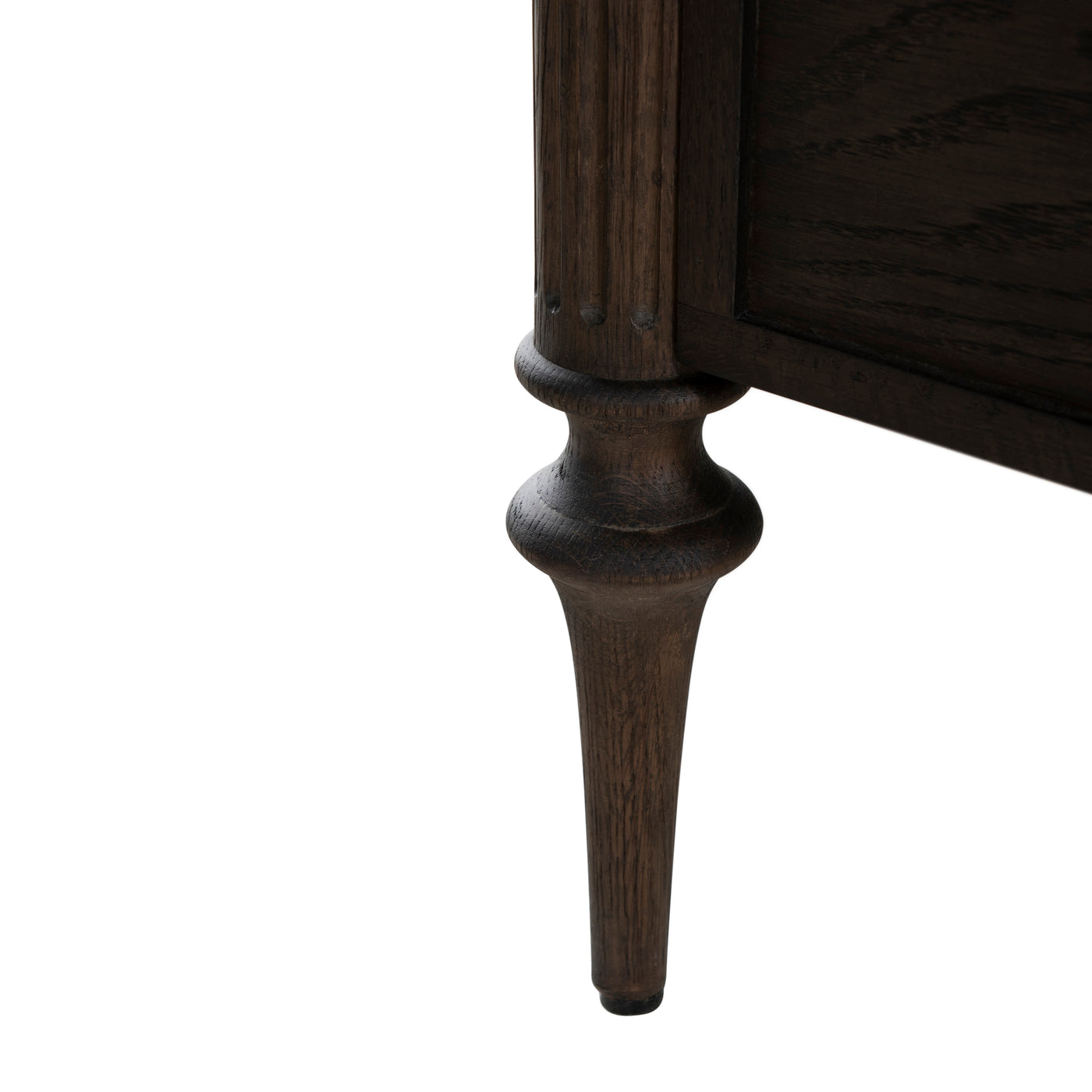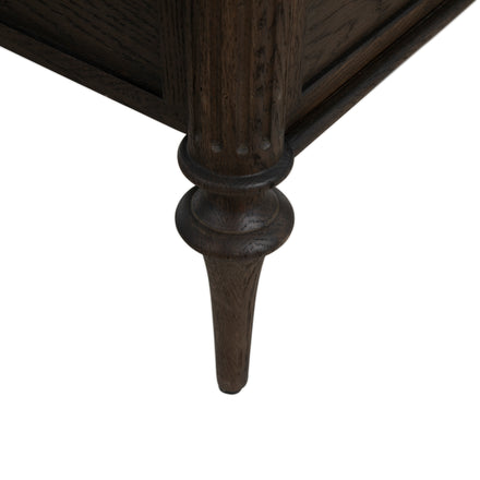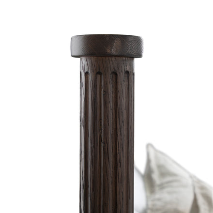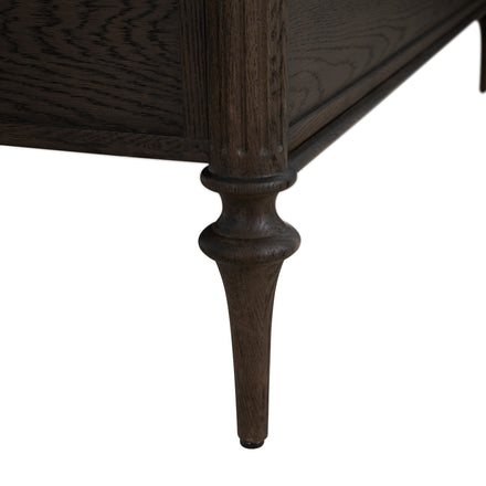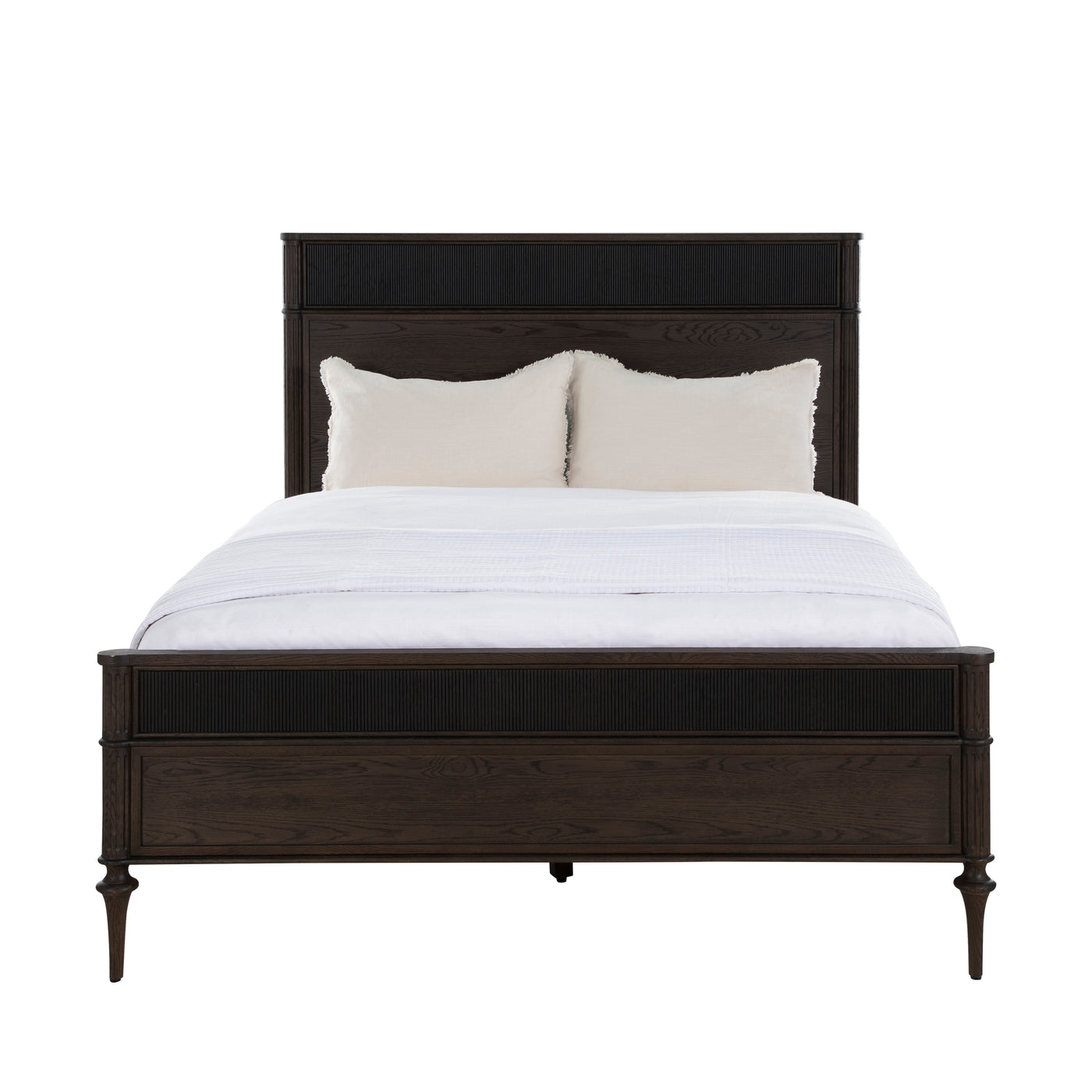 Finished in a rich dark stained oak, The Andrea Queen Bed features fluted panel details and classic tapered legs that bring texture and sophistication to the design. With its balanced proportions and warm tone, the Andrea Queen Bed creates a refined focal point for any bedroom.
