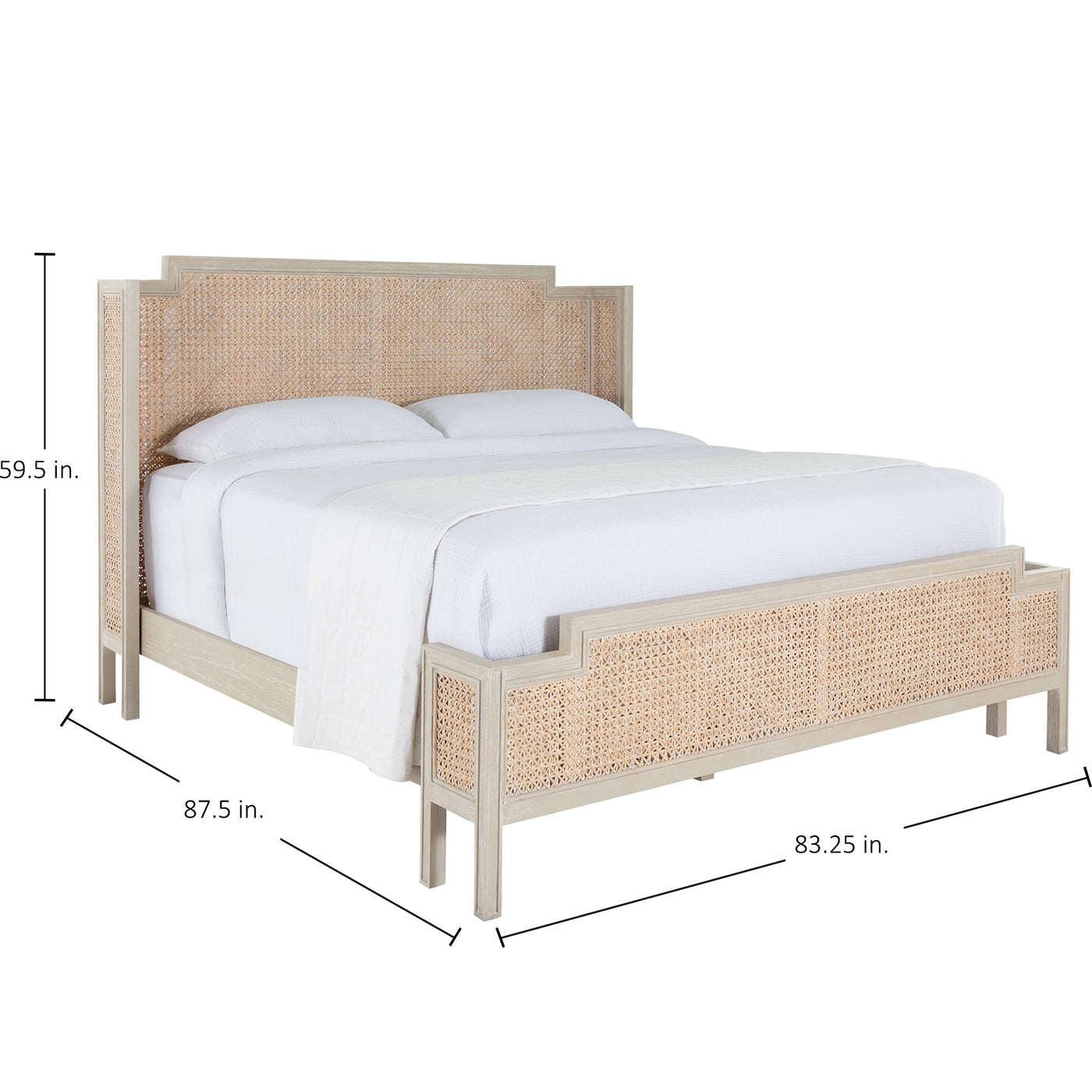 Camille Natural Rattan Wood Transitional Cane Bed - King, White Ivory