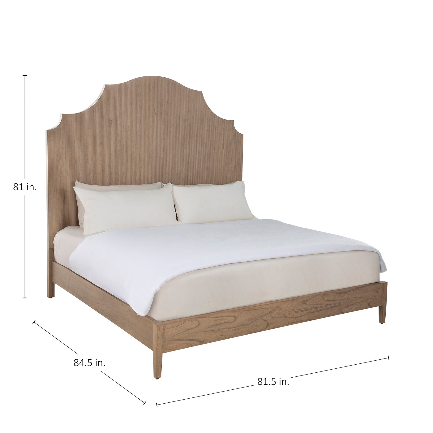 The Princeton Bed draws inspiration from French antique design, offering a compelling reinterpretation of classic traditional motifs. The distinctive arch and contours on the high headboard showcase the typical Gabby design aesthetic, blending elegance with a sense of architectural beauty. A fine detailed vertical ribbing effect can be found across the headboard, bringing a modern twist to the overall design. Available in both Queen and King sizes, this bed is finished in either a natural or dark wood finish, lending it a rich, sophisticated look. The Princeton Bed is perfect for those who appreciate the blend of traditional design elements with a touch of modern flair.