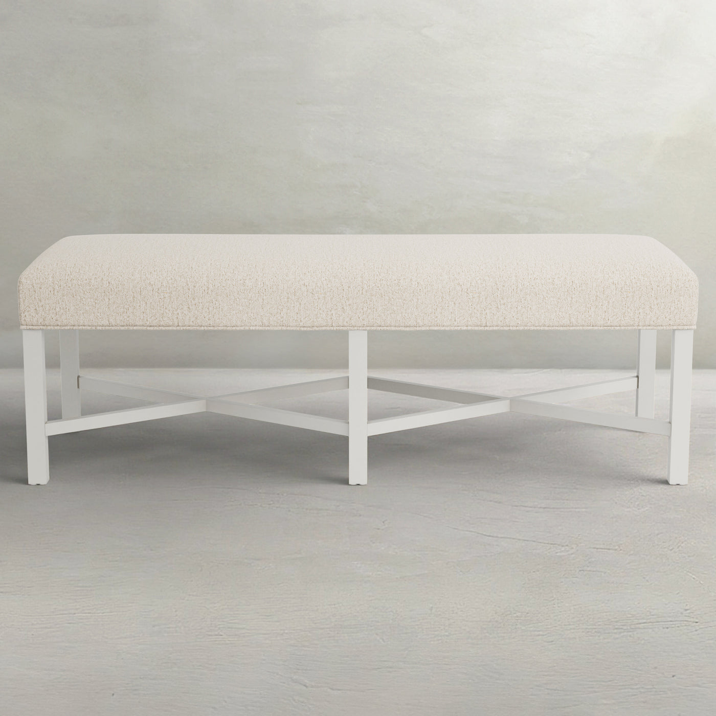 The Force Bench, featuring robust wooden legs and a distinctive lower stretcher, provides both strength and a unique aesthetic. Its upholstered seat adds a touch of comfort, beautifully contrasting the solid wood construction. Handcrafted in North Carolina, this bench seamlessly blends functionality with elegance, making it an ideal seating solution for various spaces seeking durability and style. Visit one of our retail locations to see the full selection of fabrics and nailhead options.