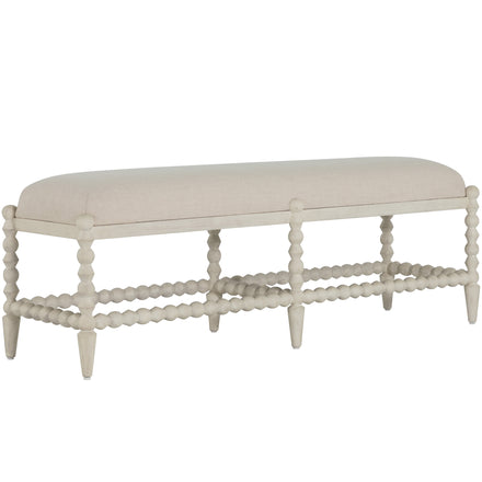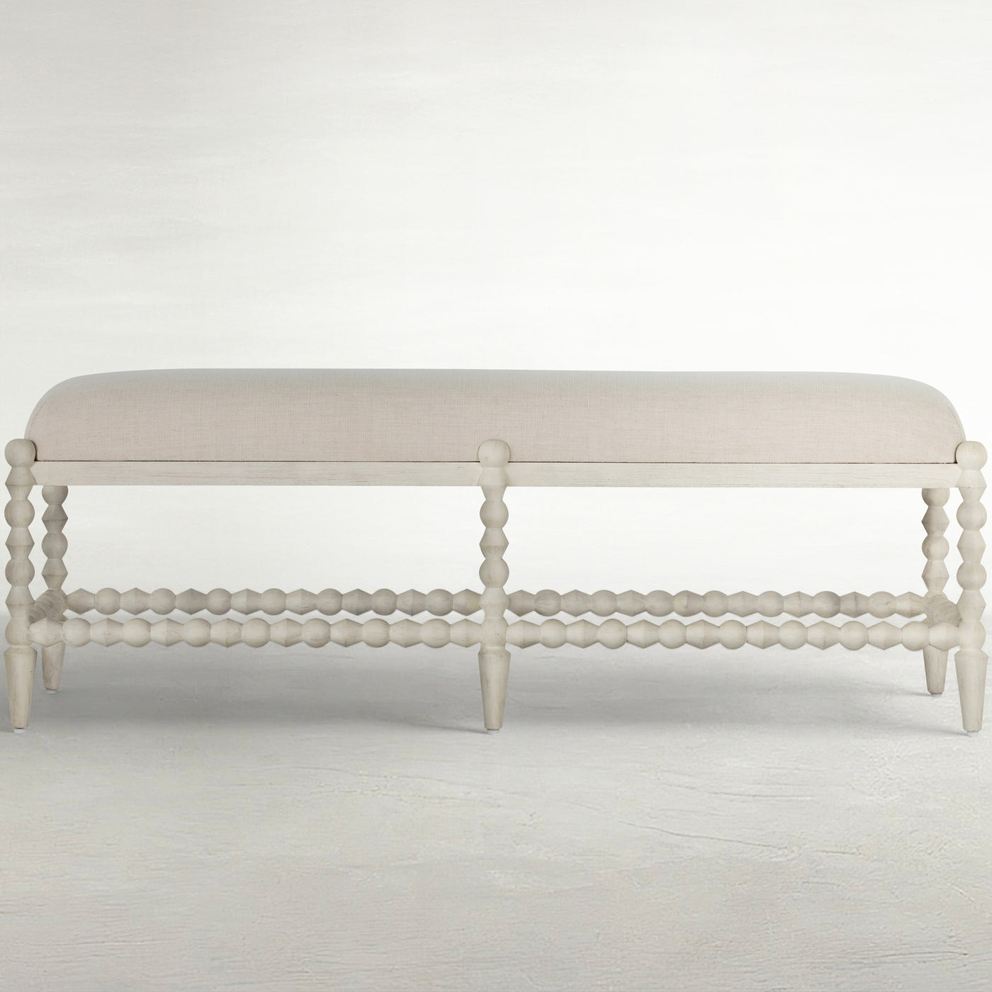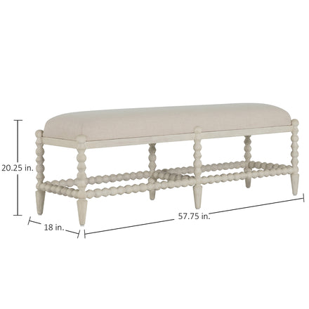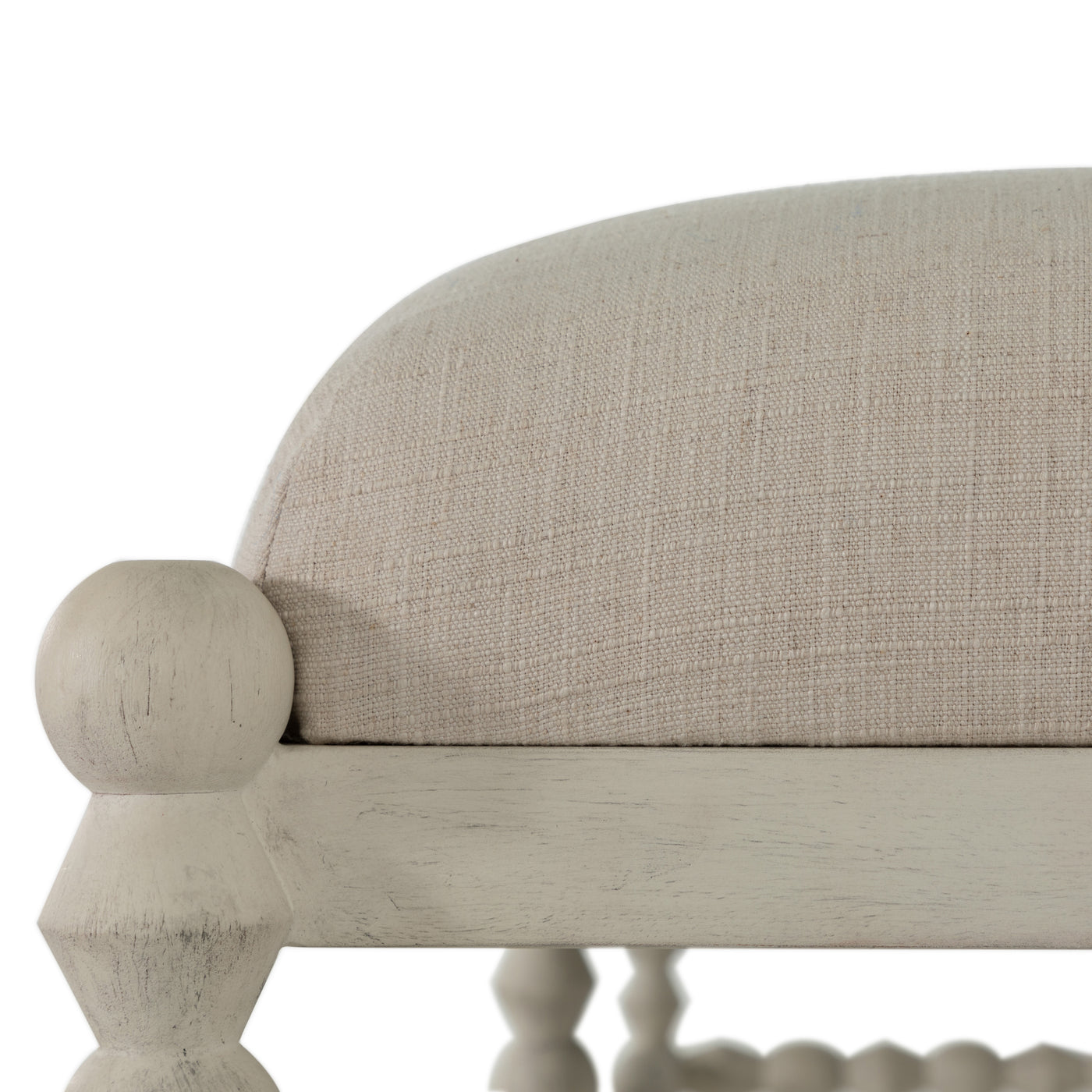 The Jennifer Bench is a modern take on the classic Jenny Lind-style bobbin design, crafted by Gabby. Finished in a soft sesame white, this bench pairs beautifully with the popular Belle mirror, sharing similar finish and design elements. Made from solid mahogany, the Jennifer Bench features a plush seat upholstered in textured white linen. With its timeless elegance and versatile charm, this bench is perfect for adding a refined touch to bedrooms, entryways, or living spaces.