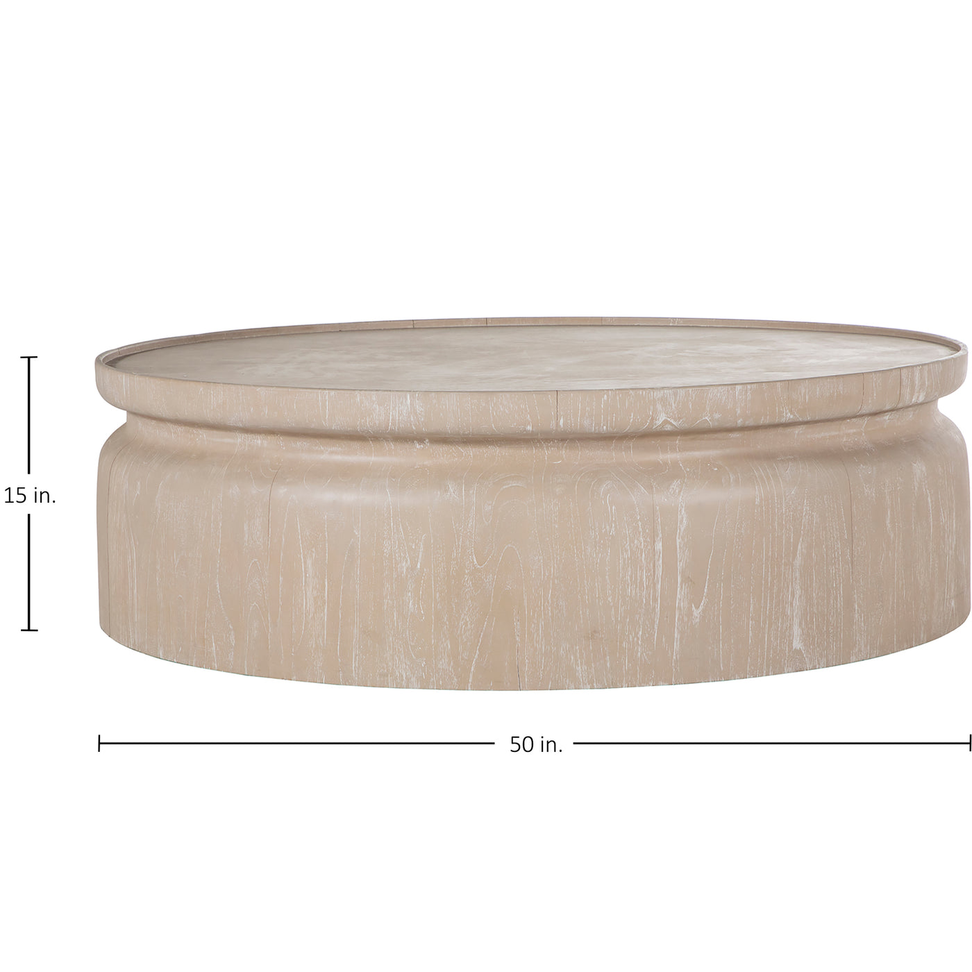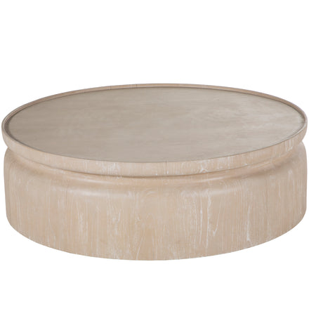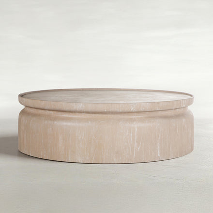 Our scene-stealing Marta Coffee Table slides in just about anywhere with a 15" height making it especially accomodating around low-rise sectionals, sofas and lounge chairs. Fashioned from. mindy wood, the profile is precisely lathed to create a recessed effect. Rounded edges with no sharp corners to bump into are a smart choice for families and pets. Its light cerusing looks radiant in any setting.