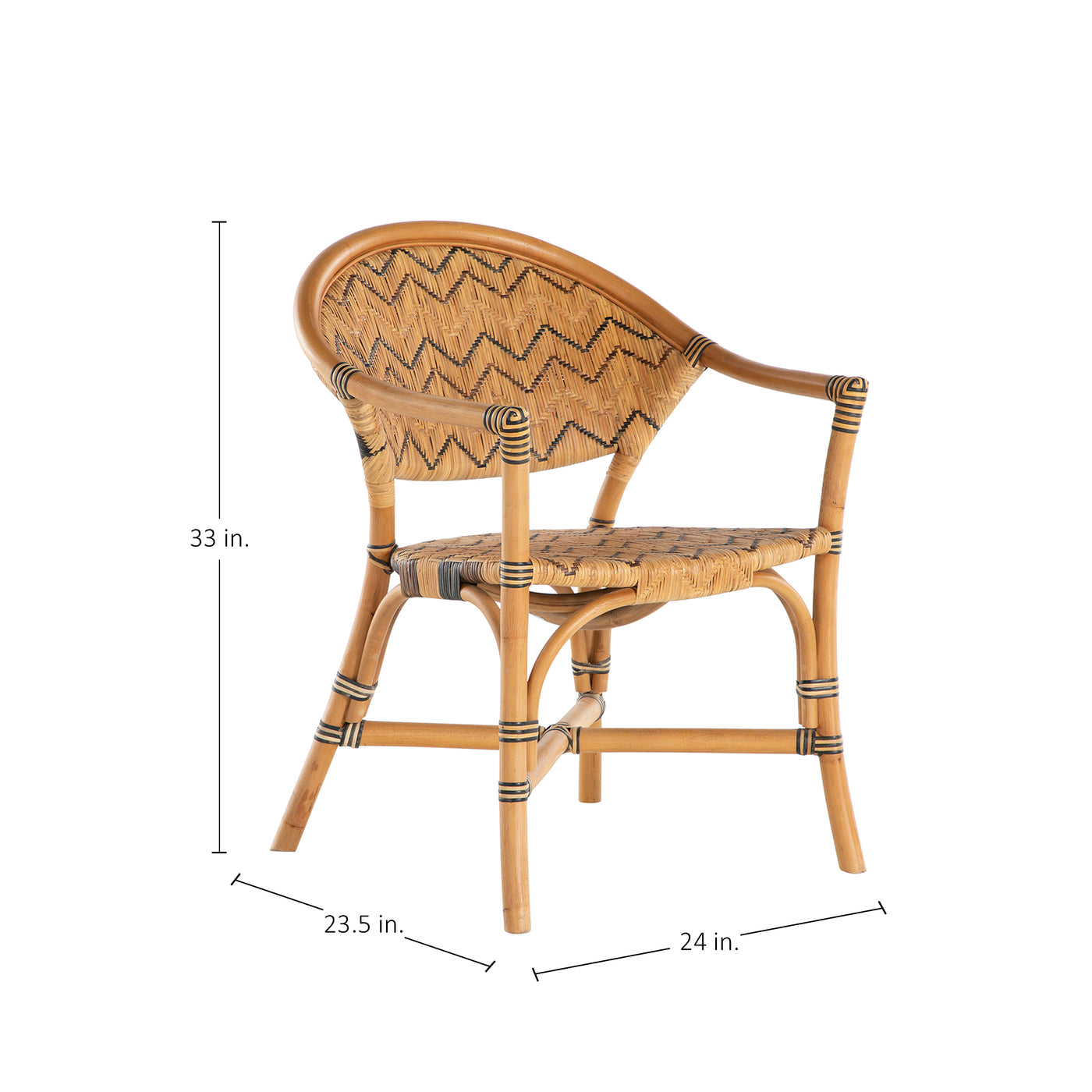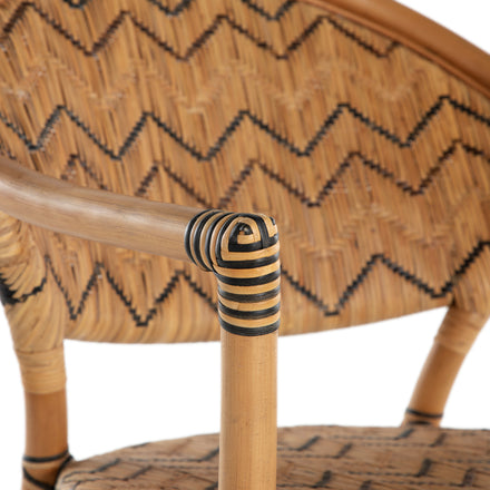The Emmett Dining Chair brings a touch of bohemian charm to your dining space. Its beautifully curved back and seat feature intricate handwoven patterns in contrasting natural rattan tones, handbound to a sturdy rattan frame construction. Perfect for a variety of interior styles, this chair adds both comfort and visual interest to your dining area.