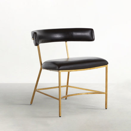 The Matthew Dining Chair exudes a blend of modern sophistication and classic elegance, making it a standout addition to any dining area. Crafted with a sleek metal frame finished in antique gold, this chair offers a sturdy yet stylish foundation. The seat and backrest are upholstered in dark brown faux leather, providing both comfort and a touch of luxury. The unique design features clean lines and a contemporary silhouette, ensuring it complements a variety of interior styles. Ideal for both formal dinners and casual gatherings, the Matthew Dining Chair promises to elevate your dining experience with its refined aesthetic and exceptional comfort.