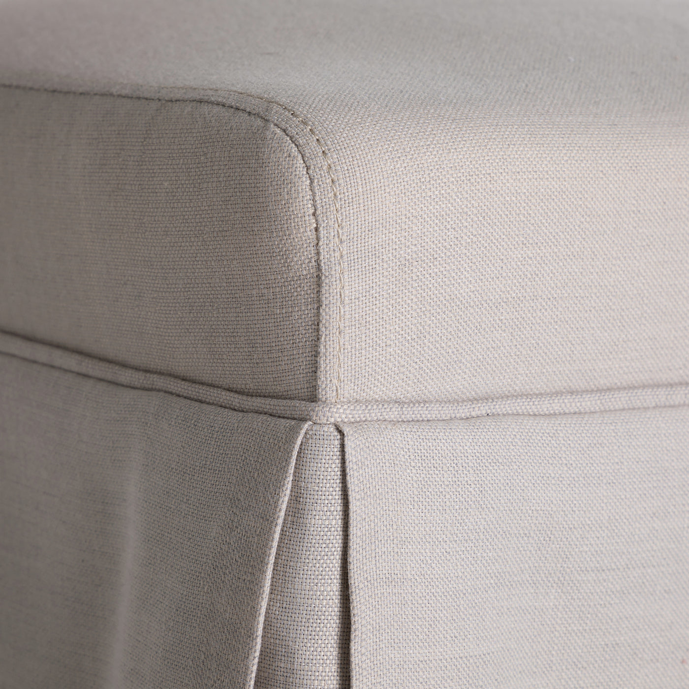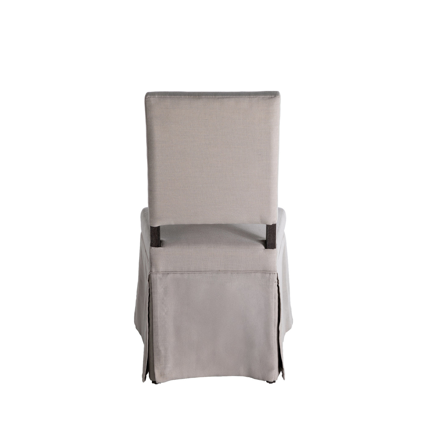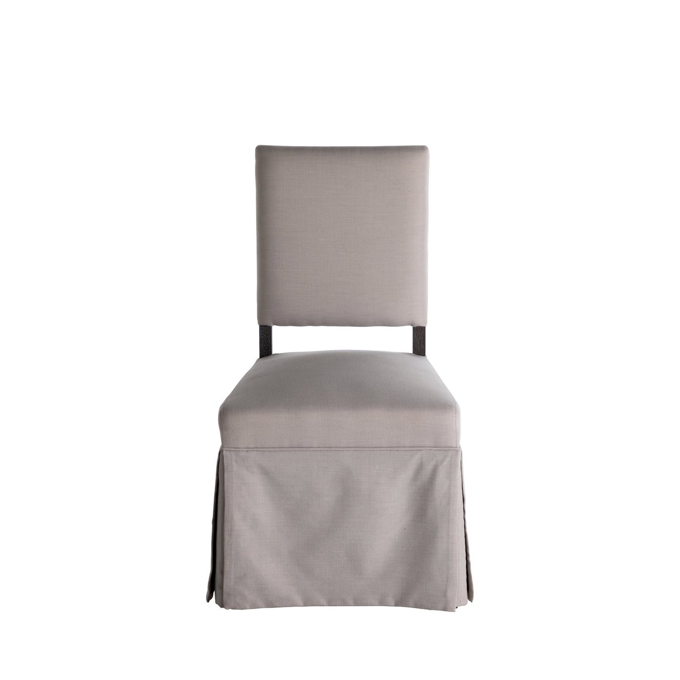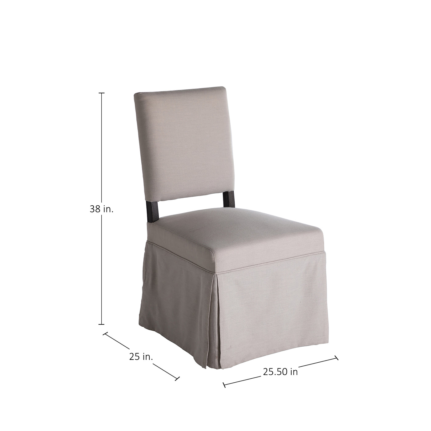 A dressmaker skirt and family-friendly upholstery make the Robinson Dining Chair a perfect fit for everyday dining and formal affairs. The spacious scale and high back fill in as extra seating too. The side chair's beige performance fabric easily cleans up from unexpected spills and messes. Strong wood frame offers sturdy support.