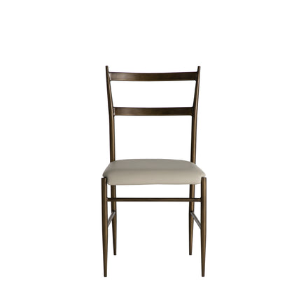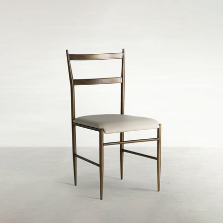 The Ward Dining Chair combines minimalist design with robust craftsmanship, making it a sophisticated addition to any dining space. The chair's slender metal frame, finished in a brushed brass finish, provides a sturdy foundation while maintaining an airy, elegant look. The seat is comfortably upholstered in a white PU leather, offering both style and comfort. With its sleek lines and understated elegance, the Ward Dining Chair seamlessly blends into a variety of interior décors, from modern to classic.